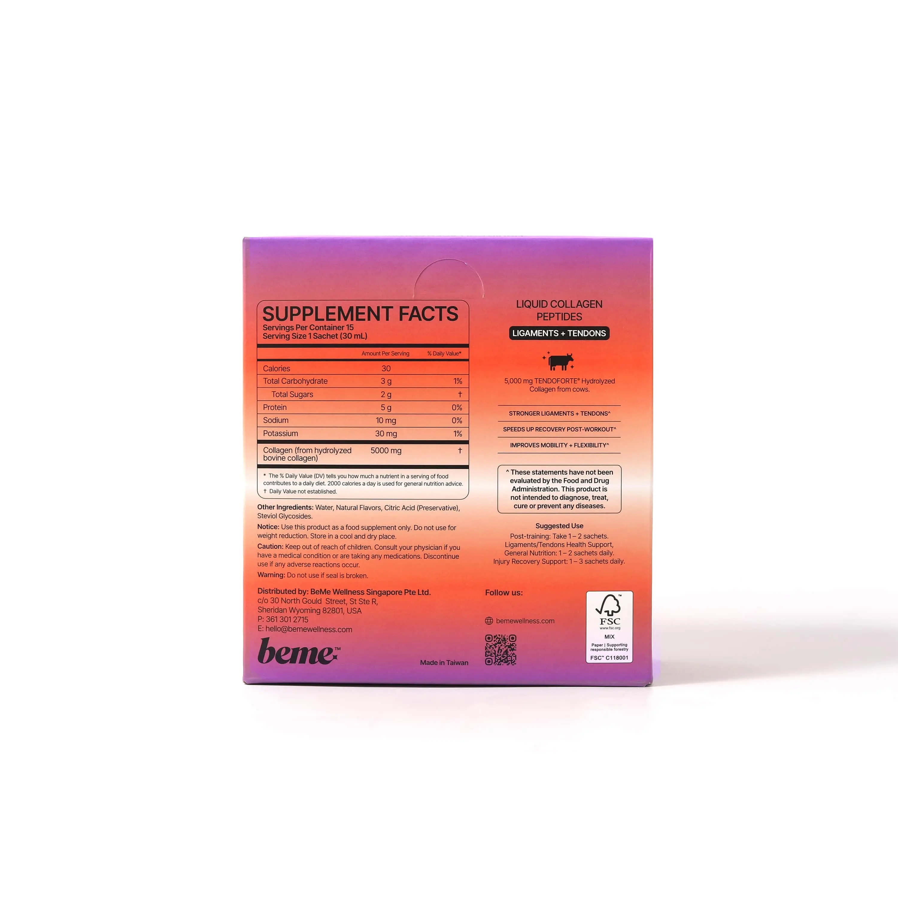 Enjoy one sachet daily, ideally post-workout or for recovery support. Store in a cool, dry place. Consume immediately after opening.