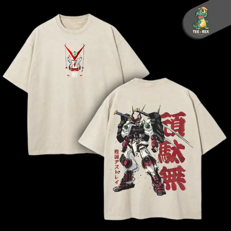 Astray Red Frame Inspired Graphic T Shirt, Oversized Vintage Wash Tee, Heavy Cotton Drop, New Arrival for Mecha Anime and Gundam Fans, Bold Streetwear for Collectors and Otaku Fashion Lovers