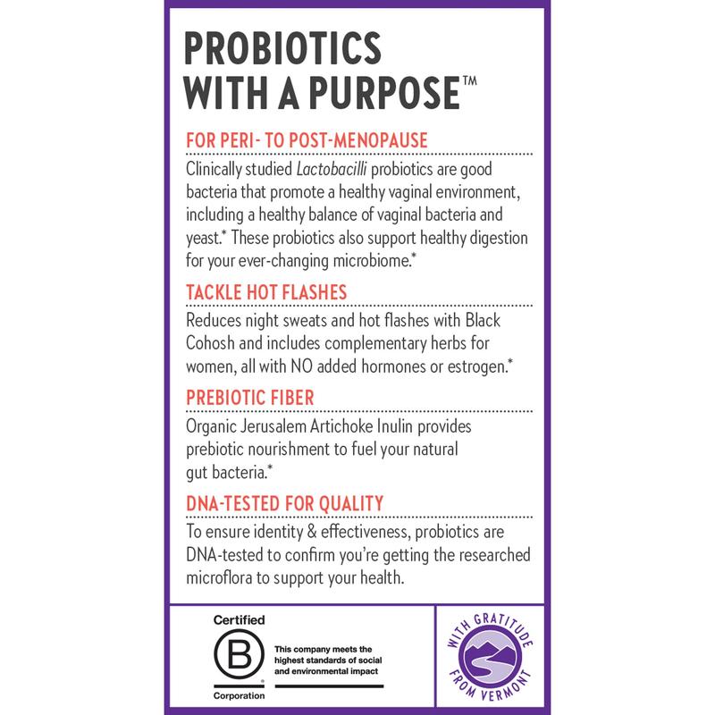 Meet the perfect pairing for peri- to post-menopause: Clinically studied probiotics for vaginal microbiome support PLUS the traditional herb black cohosh for hot flashes & night sweats.*