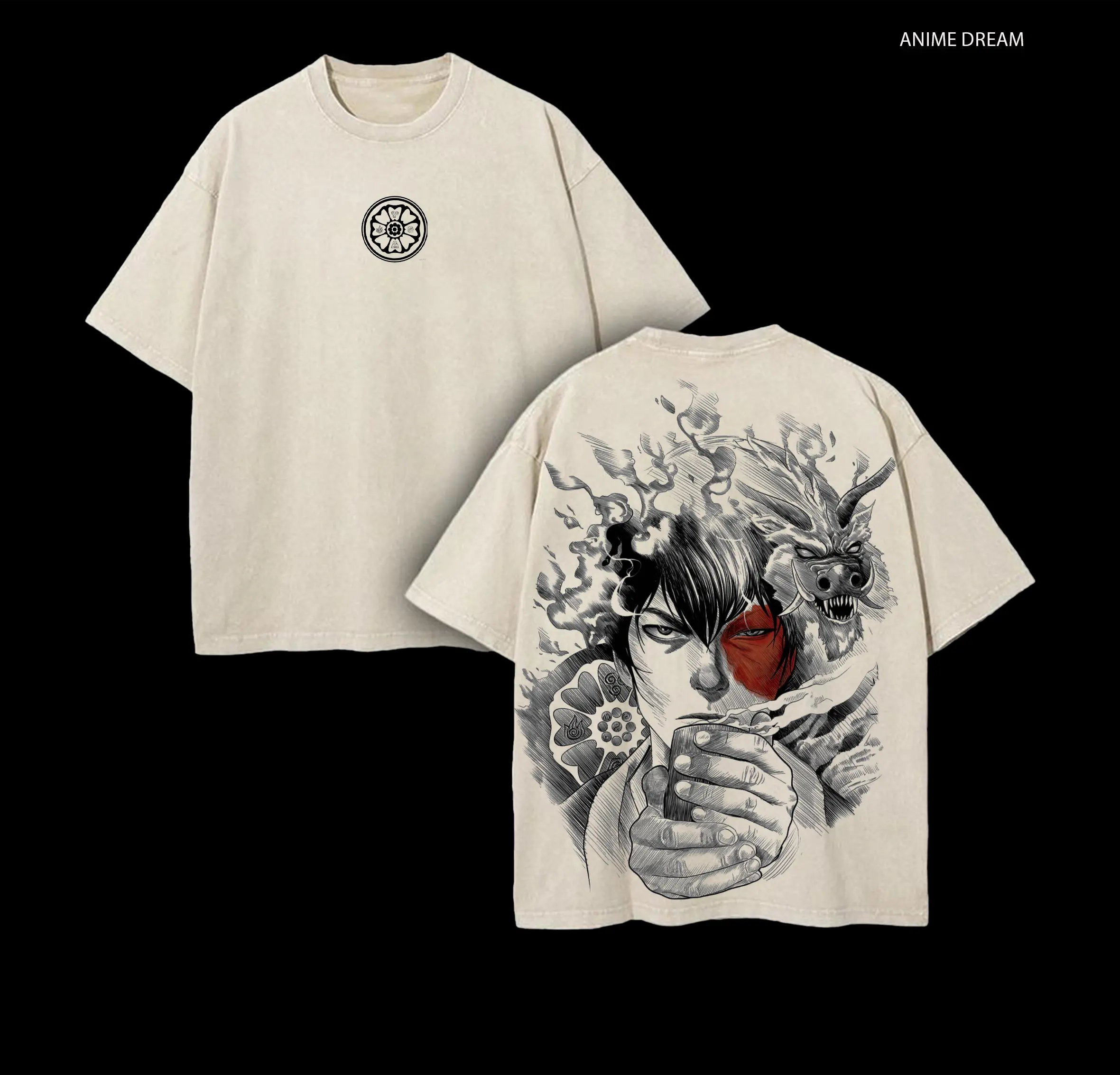 5. Zuko Avatar The Last Airbender Anime Double Printed Vintage Washed Tee Unisex Oversize Heavyweight Cotton T-shirt for Anime Fans and Lovers