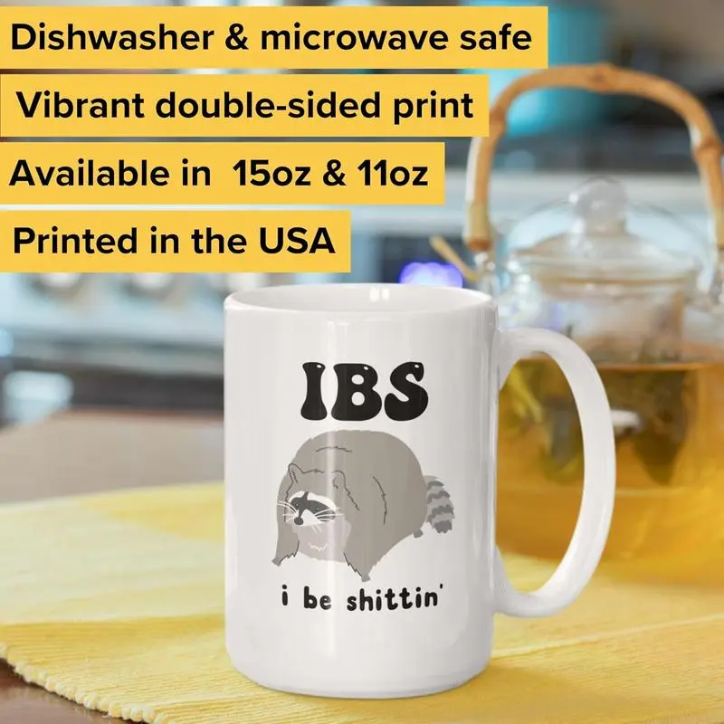 Kickstart your day with a laugh using the IBS Raccoon Ceramic Coffee Mug – the ultimate funny drinkware for home, office, or gifts. Featuring a quirky raccoon design with relatable humor, this reusable and washable ceramic mug is perfect for enjoying coffee, tea, or any beverage. A hilarious gift idea for friends, coworkers, or anyone who loves memes and mugs.