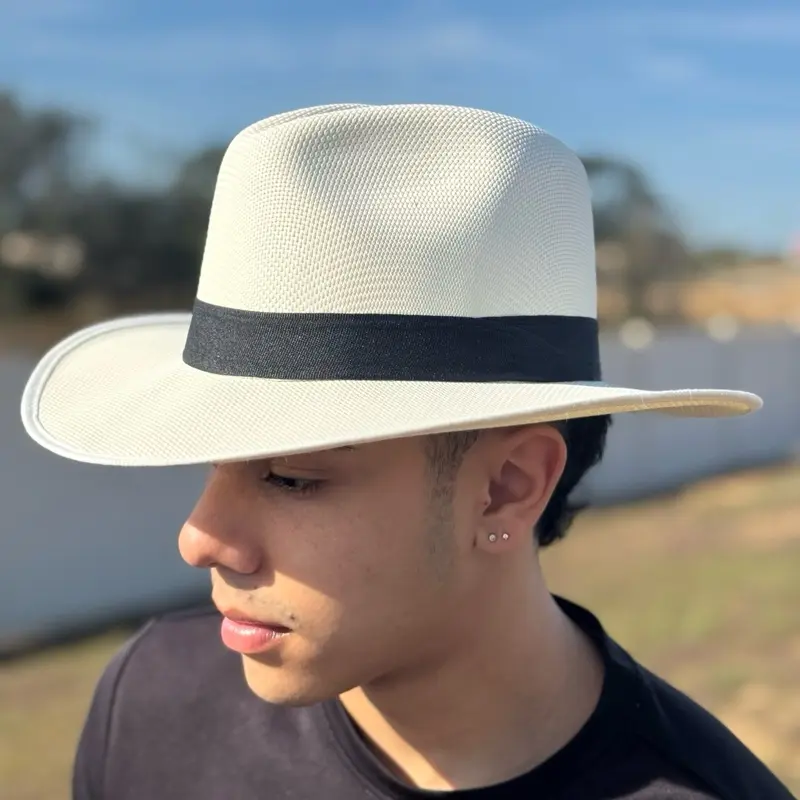 Aguadeño Panama-Style Hat - Unisex Lightweight & Durable White Fedora with Black Band Made in Colombia