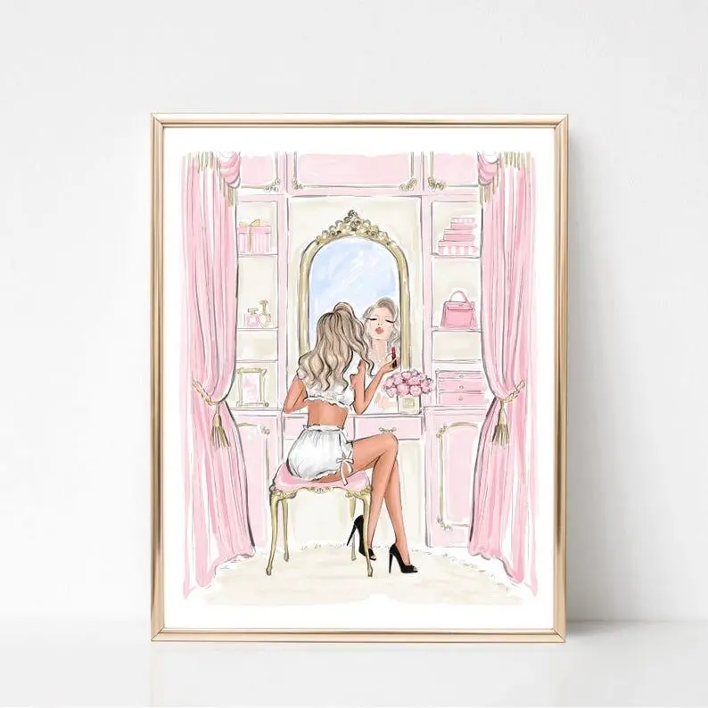 5. [SALE UP TO 50% - UNFRAMED] Vanity Art Print, Glamorous Fashion Illustration, Makeup Room