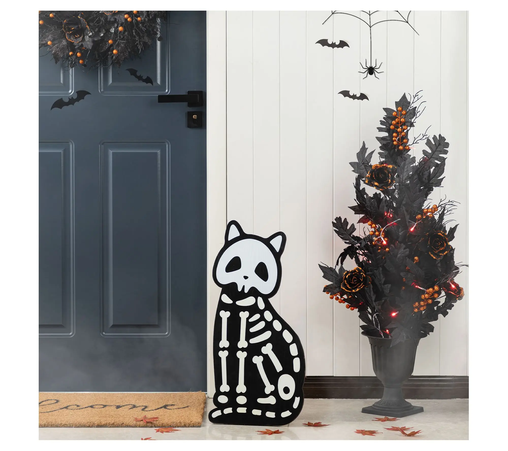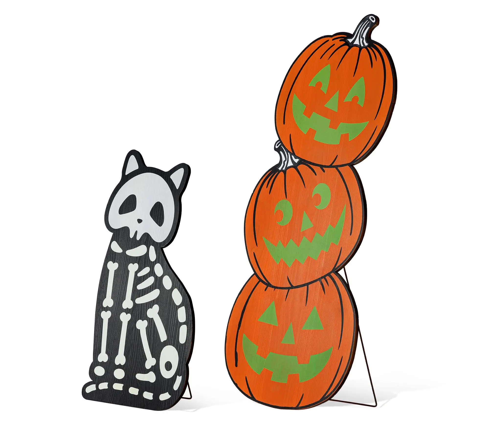 Set the stage for festive fun with a pair of porch signs that brings a lively twist to your Halloween scene. Friends and neighbors are sure to smile at the playful stack of pumpkins and the mischievous skeleton cat greeting them at your door. Place this duo together or apart to add a bit of personality and charm wherever you want a spirited touch during the season. From Glitzhome.