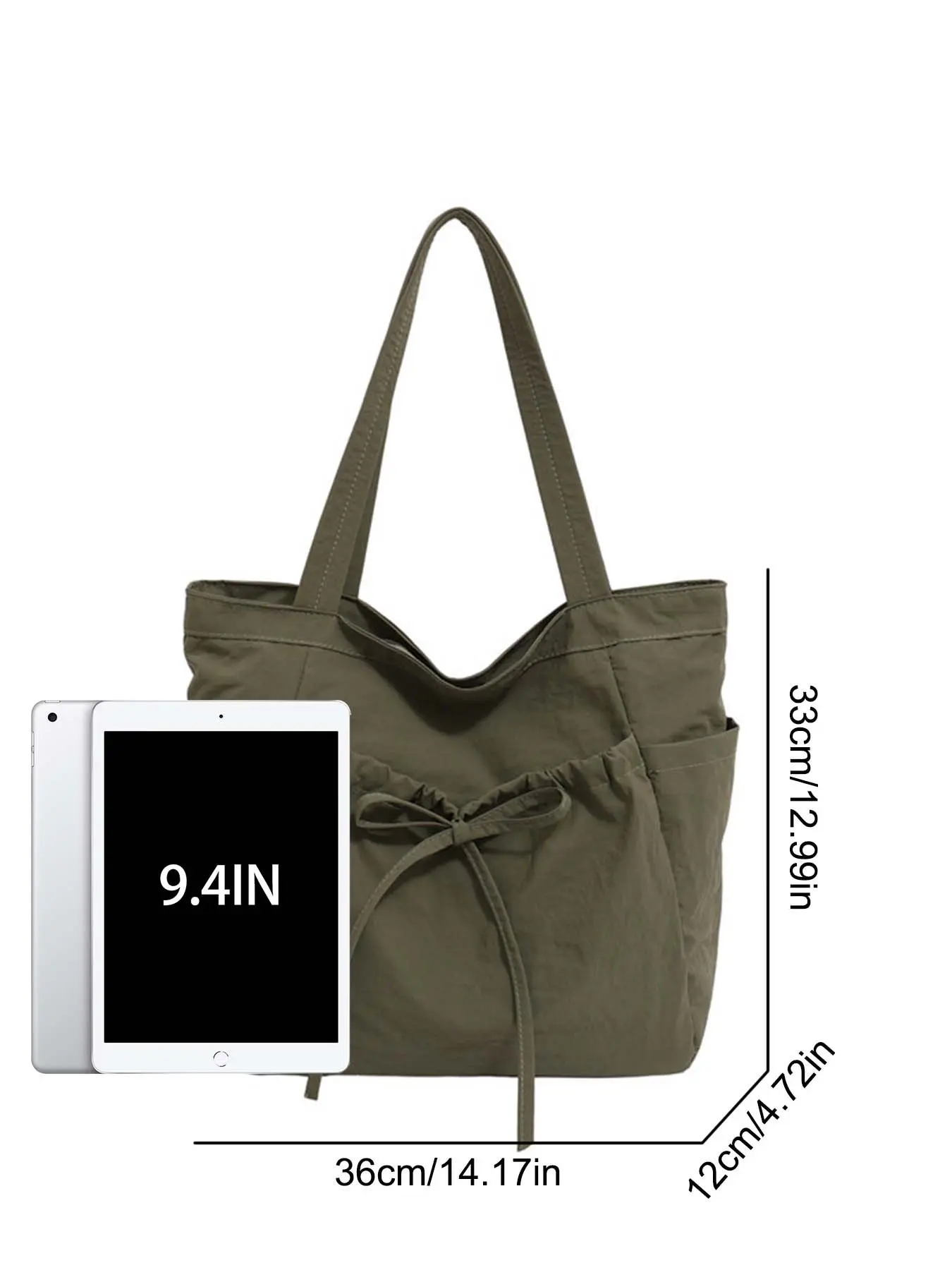 Its so cute. Its a small bag perfect for work, school. Etc its good quality. Its have pockets for small things in the inside. It fit all the things I have for work.