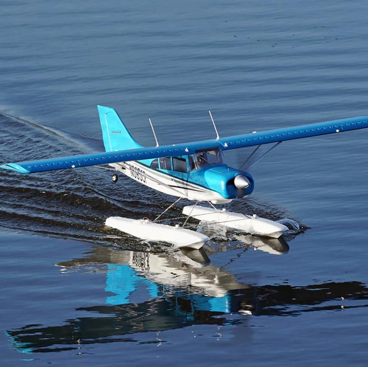 Maule can be equipped with two sets of landing gear - a tire set and a float set, for conquering any terrain year-round. The pre-installed 3S/4S compatible brushless power system delivers plenty of performance for flying from smooth or rough surfaces using the oversized wheels, or from water using the included float set.