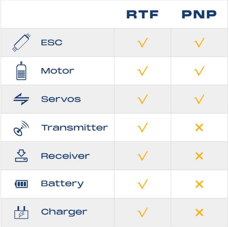 ② PNP (Plug-and-Play) airplanes include the ESC, motor, and servos all pre-installed from the factory. Transmitter, receiver, battery, and charger are not included.