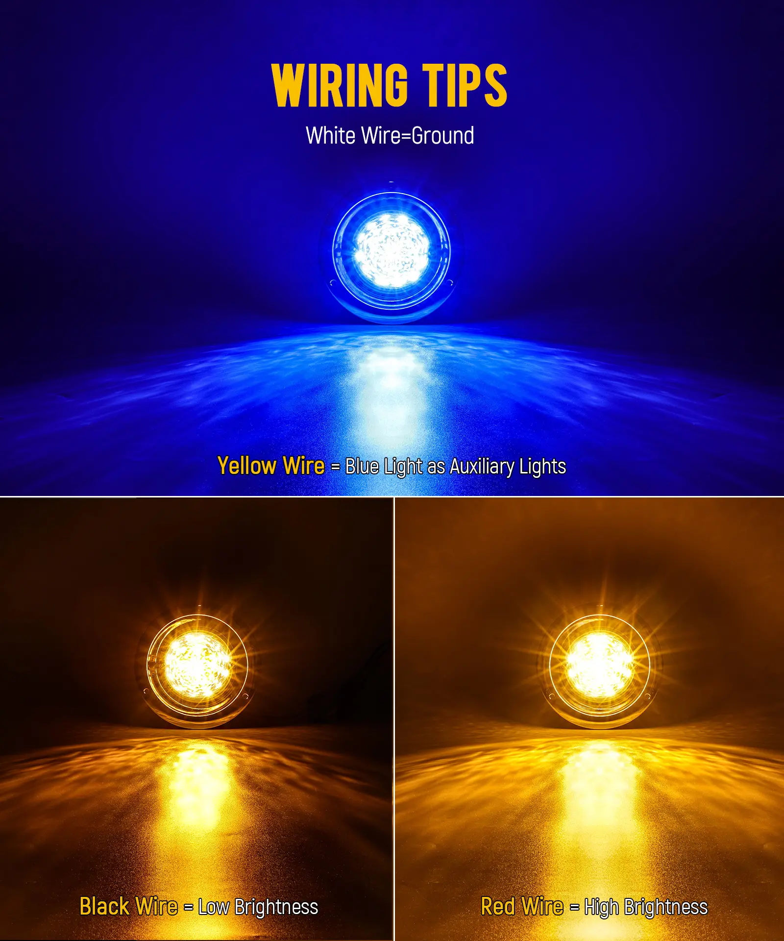 ·Dual Color: Amber and blue LED markers.