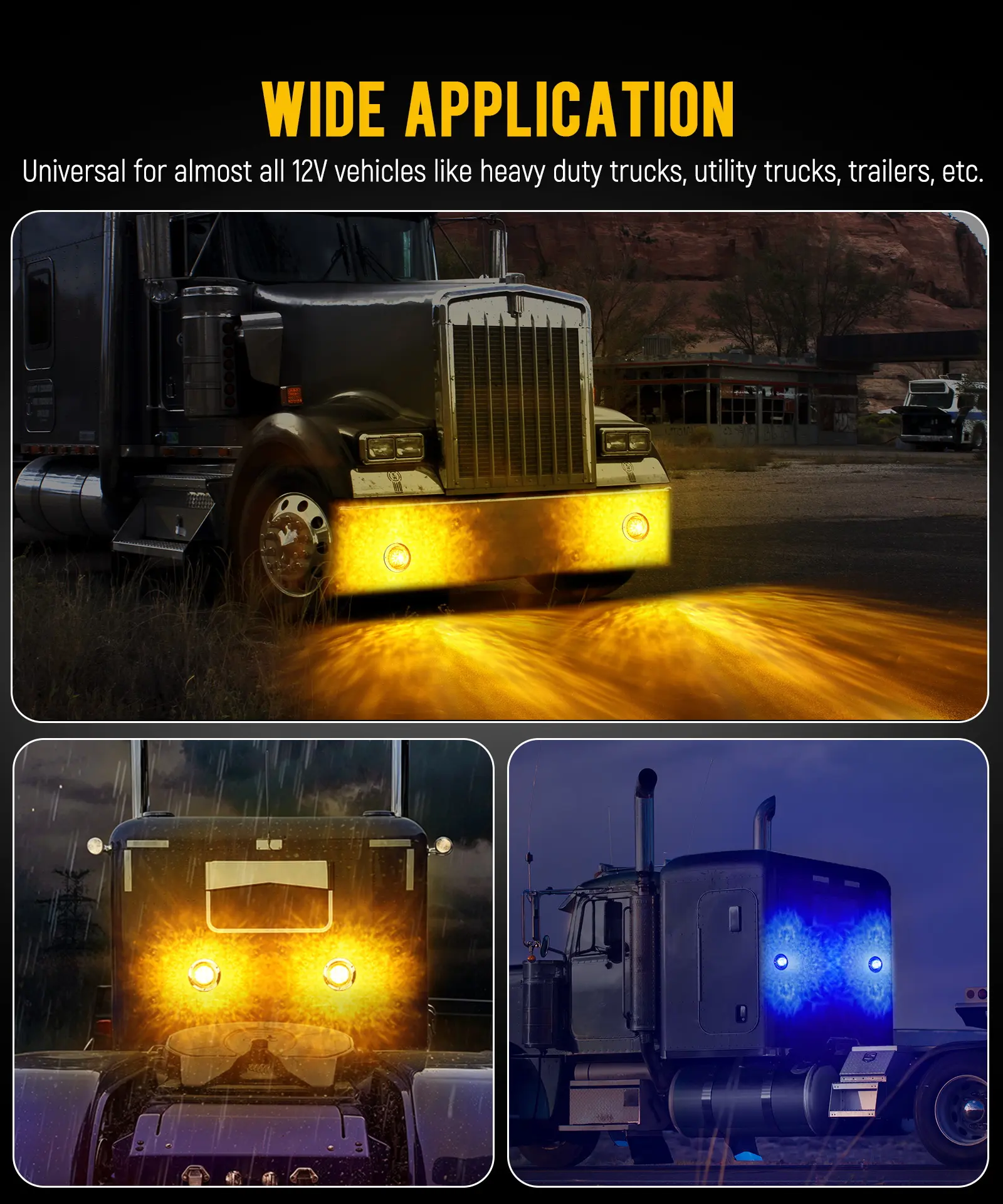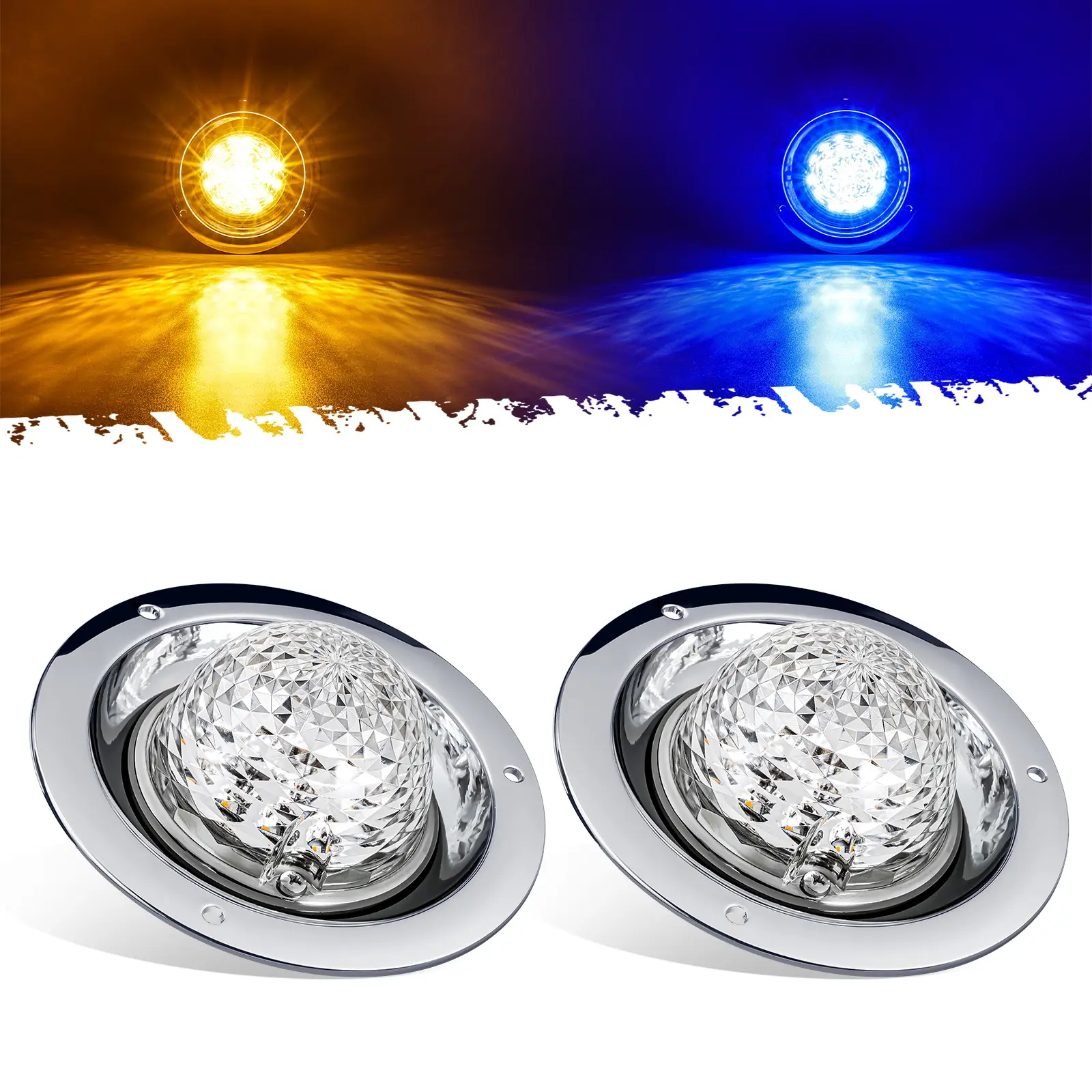 ✨ Transform your Peterbilt, Freightliner, or RV with the Partsam Watermelon Lights! These dual-color LED markers feature an amber and blue prismatic lens. They enhance visibility and add a modern touch. The chrome base complements any vehicle. Perfect for trucks, trailers, and Motohomes.