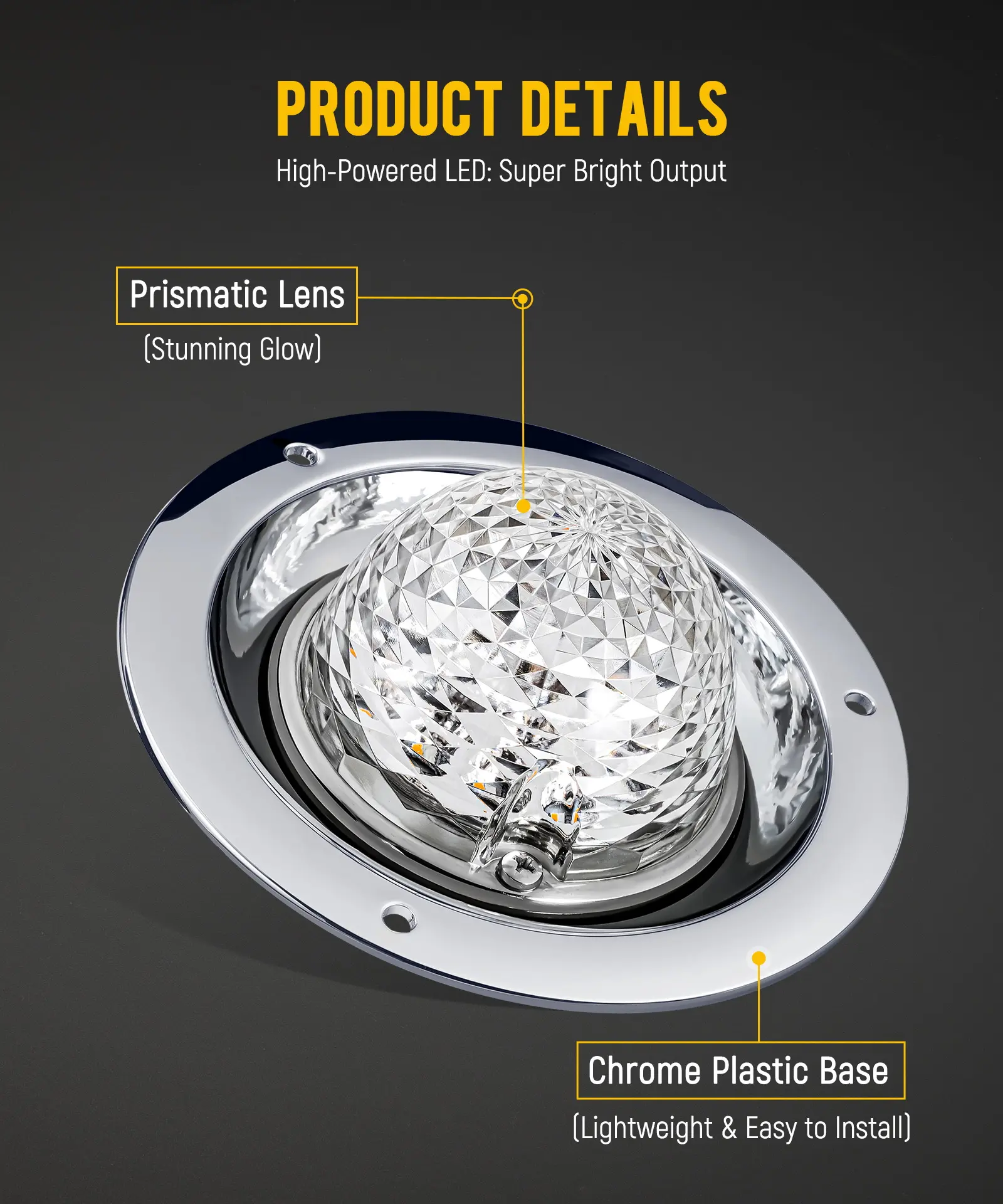 ·Chrome Base: Adds a sleek finish.