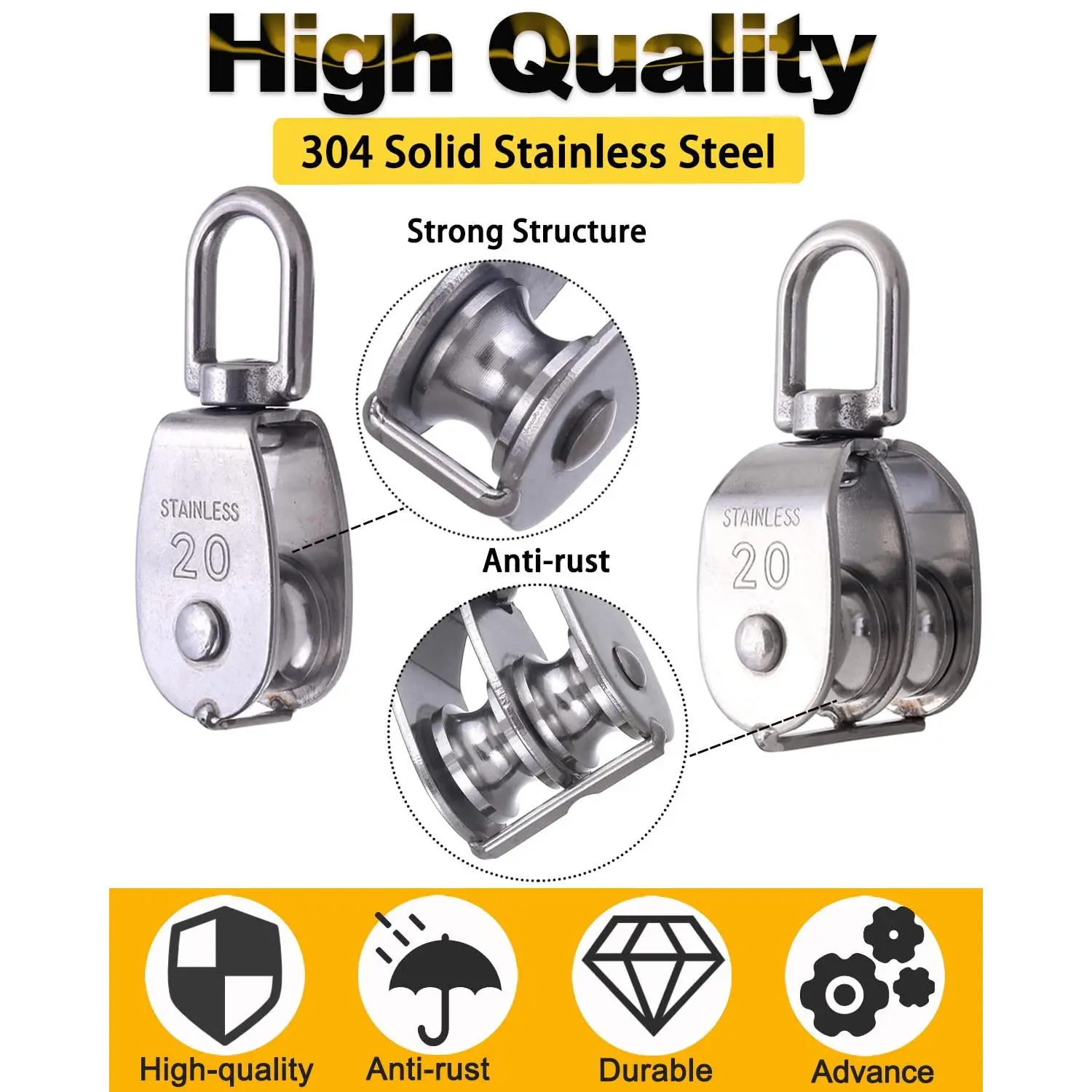 ·TOP QUALITY - Made of high-quality stainless steel material, the whole pully has higher hardness, moisture resistance, corrosion resistance, rust resistance than ordinary materials. Rugged construction and shock-resistant design make it extremely rugged.