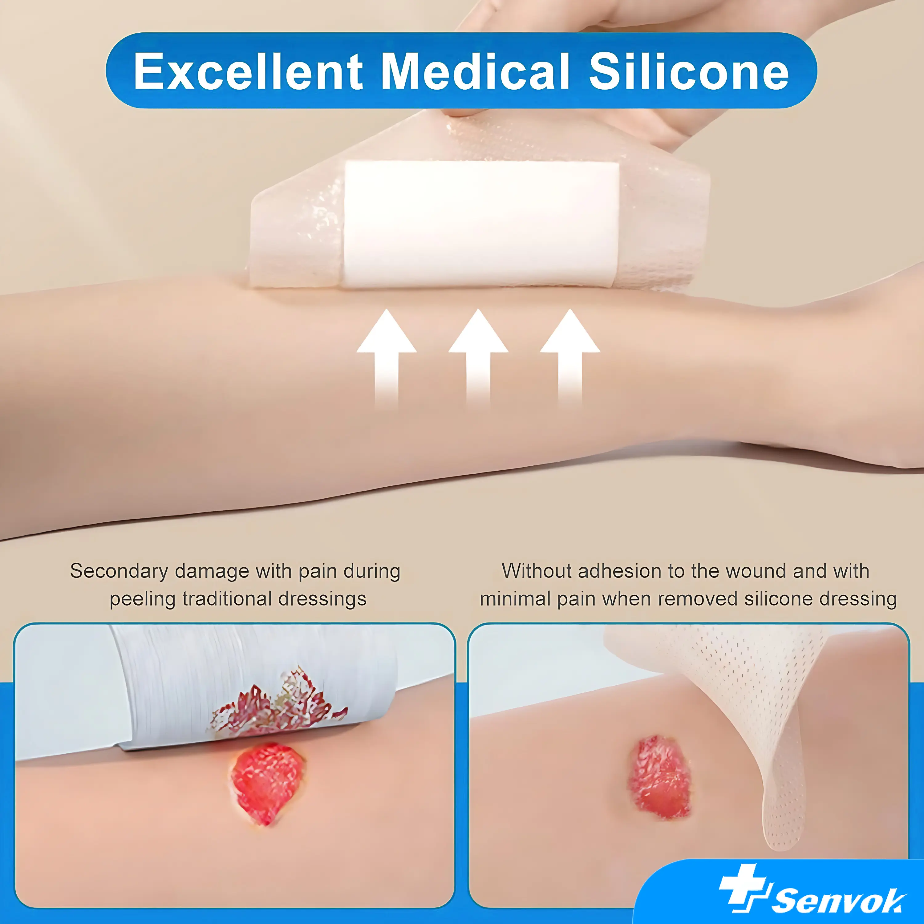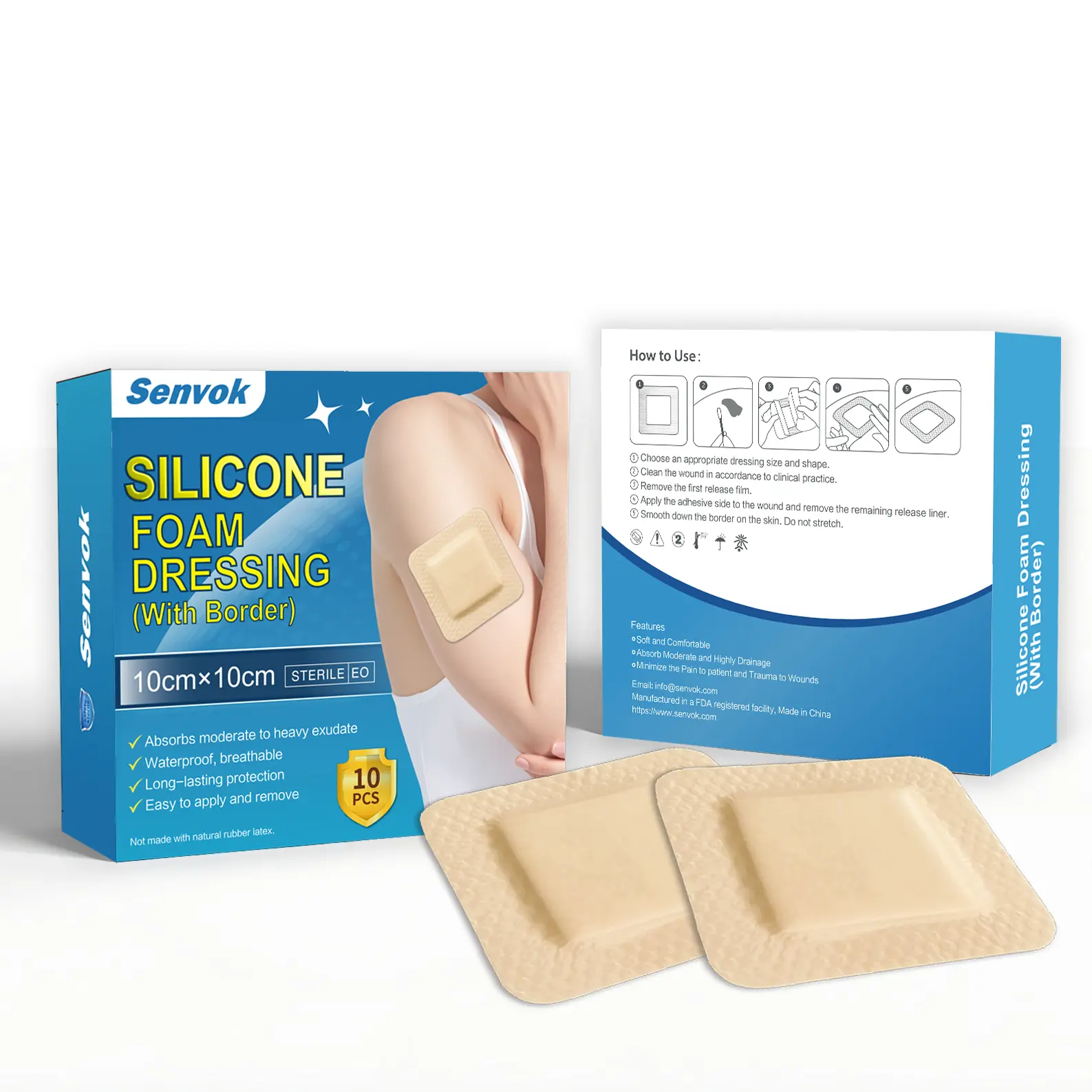 Senvok Medical-Grade Silicone Foam Dressing10x10cm Ultra Absorbent Waterproof BreathableLatex-Free Sterile 10 Pack for Pressure UlcersDiabetic & Chronic Wounds -Healthcare