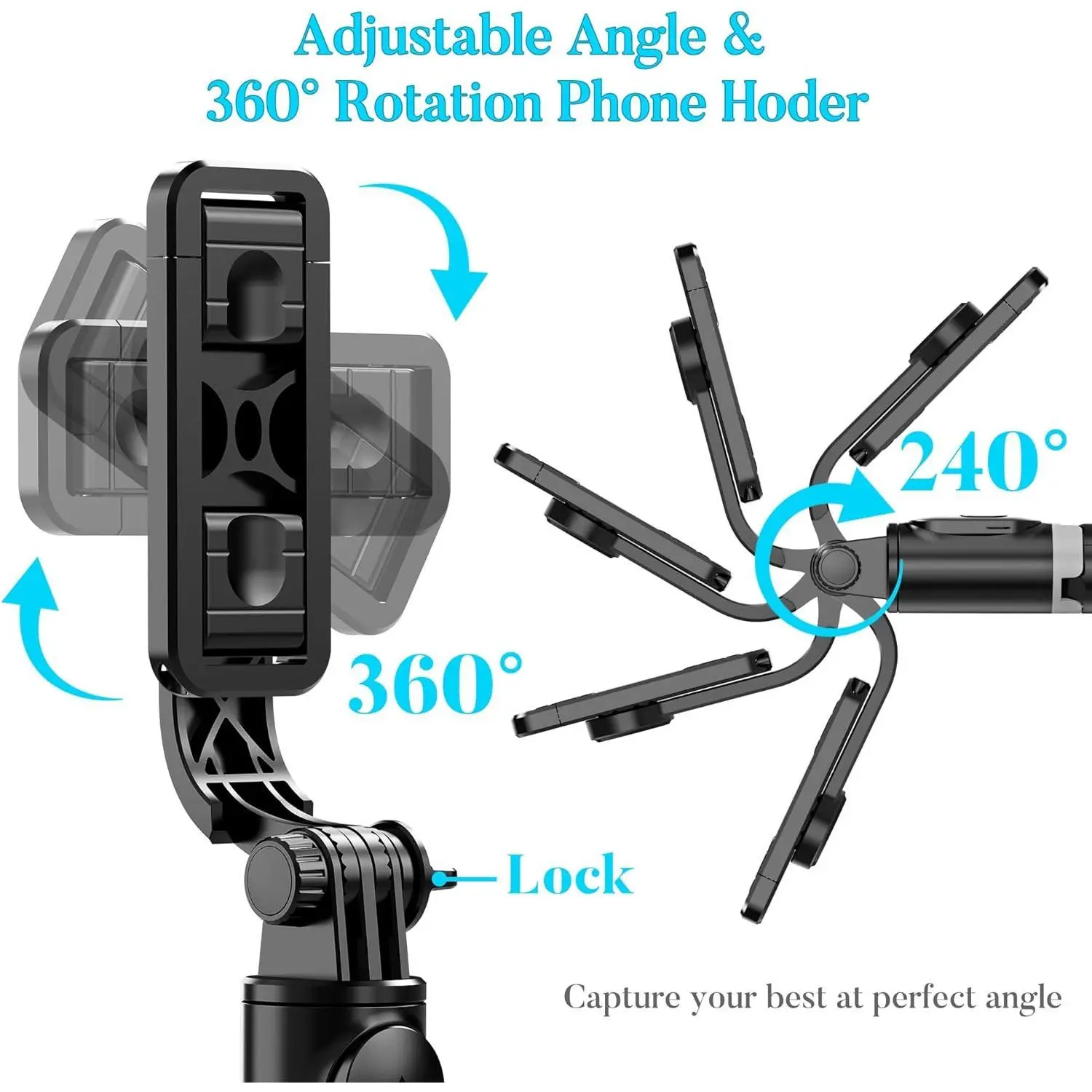 The upgraded 360° swivel photography feature lets you rotate and select horizontal or vertical camera mode for the best angle. Simply rotate the phone holder to take photos. In addition, the 3-in-1 selfie stick with tripod allows for video calls or live streaming.