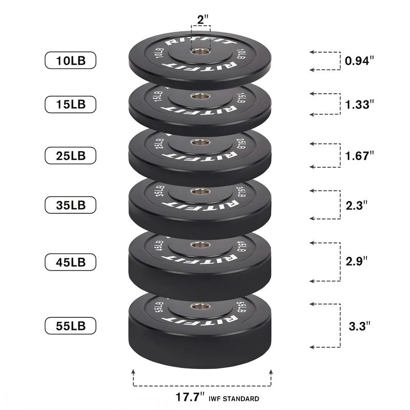 RitFit offers complete rubber weight plate sets ranging from 100LB to 370LB, providing everything you need for a comprehensive workout setup right out of the gate, catering to various fitness levels and training preferences.