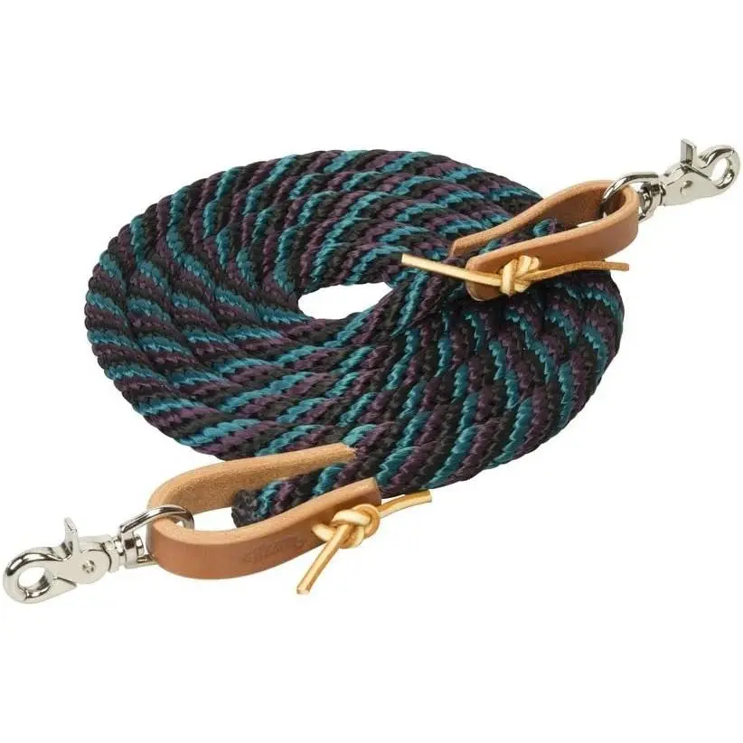 Meticulously crafted from premium poly rope, these reins are engineered to provide the perfect weight and drape required for subtle communication with your horse. The addition of golden brown leather water loop ends, expertly secured with durable leather laces, ensures a classic Western aesthetic that stands up to the rigorous demands of cutting, reining, and ranch work.