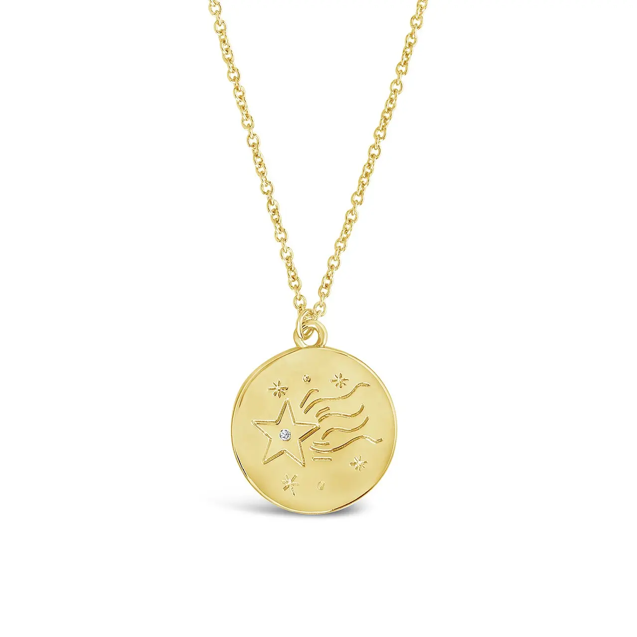 When you wish upon a star, you'll receive a gorgeous necklace like this one! Available in gold and silver tones, this disk pendant features a delicate shooting star adorned with sparkling CZ stones. Adjust it for the perfect fit!