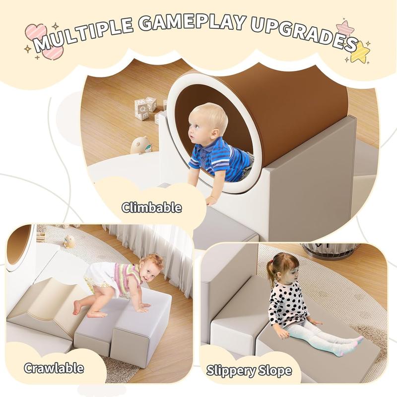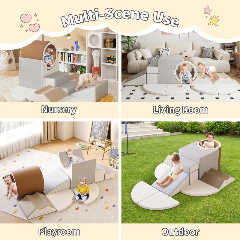 5. Soft Play Climbing Blocks for Toddlers - 10pc Set with Tunnel for Climb,Toddler Playtime Corner Climber Indoor Foam Play Gym, Crawl and Slide