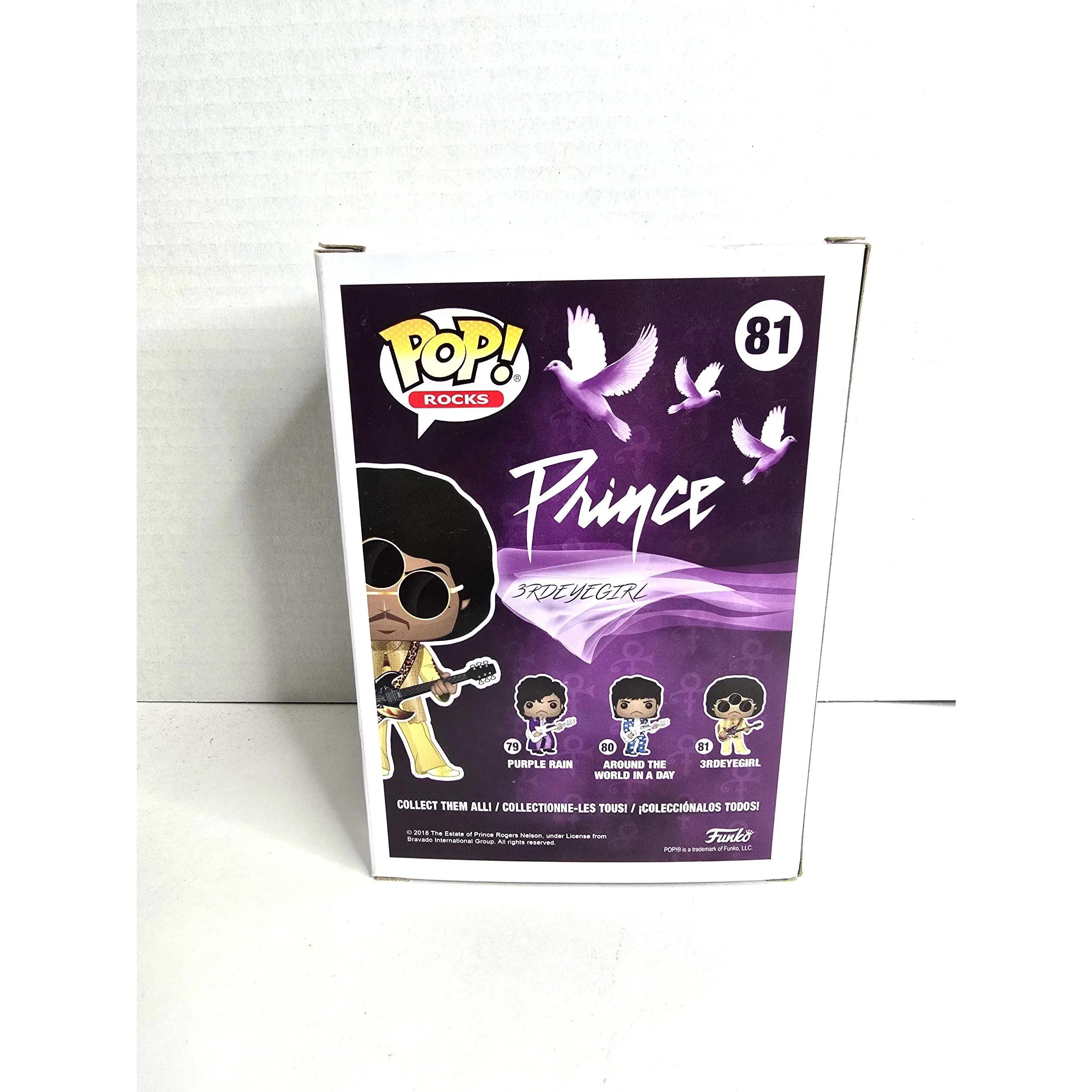 The image shows the Funko Pop Rocks Prince No. 81. It immortalizes Prince's legendary look from the Purple Rain era.