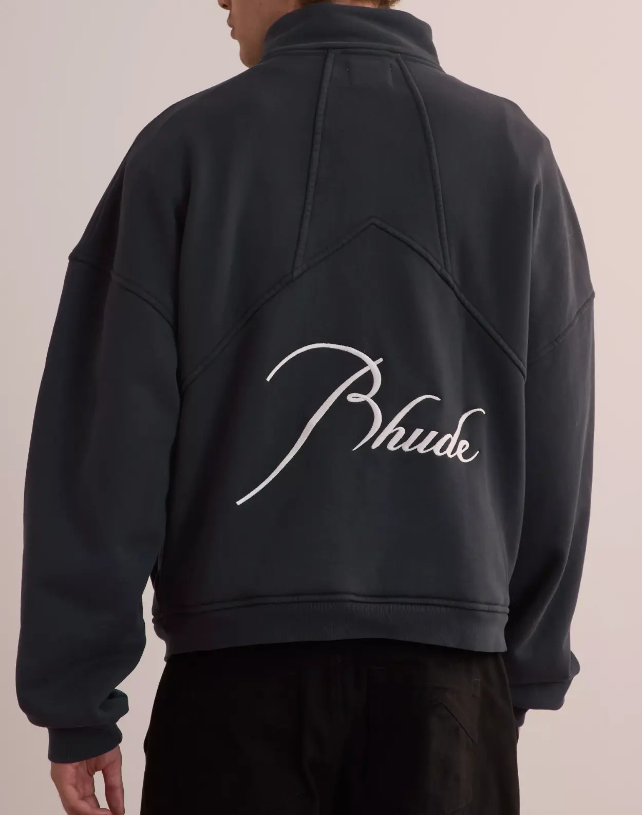 RHUDE Authentic Men's Vintage Black Heavyweight Embroidered Quarter Zip Sweatshirt SM - MSRP: $750