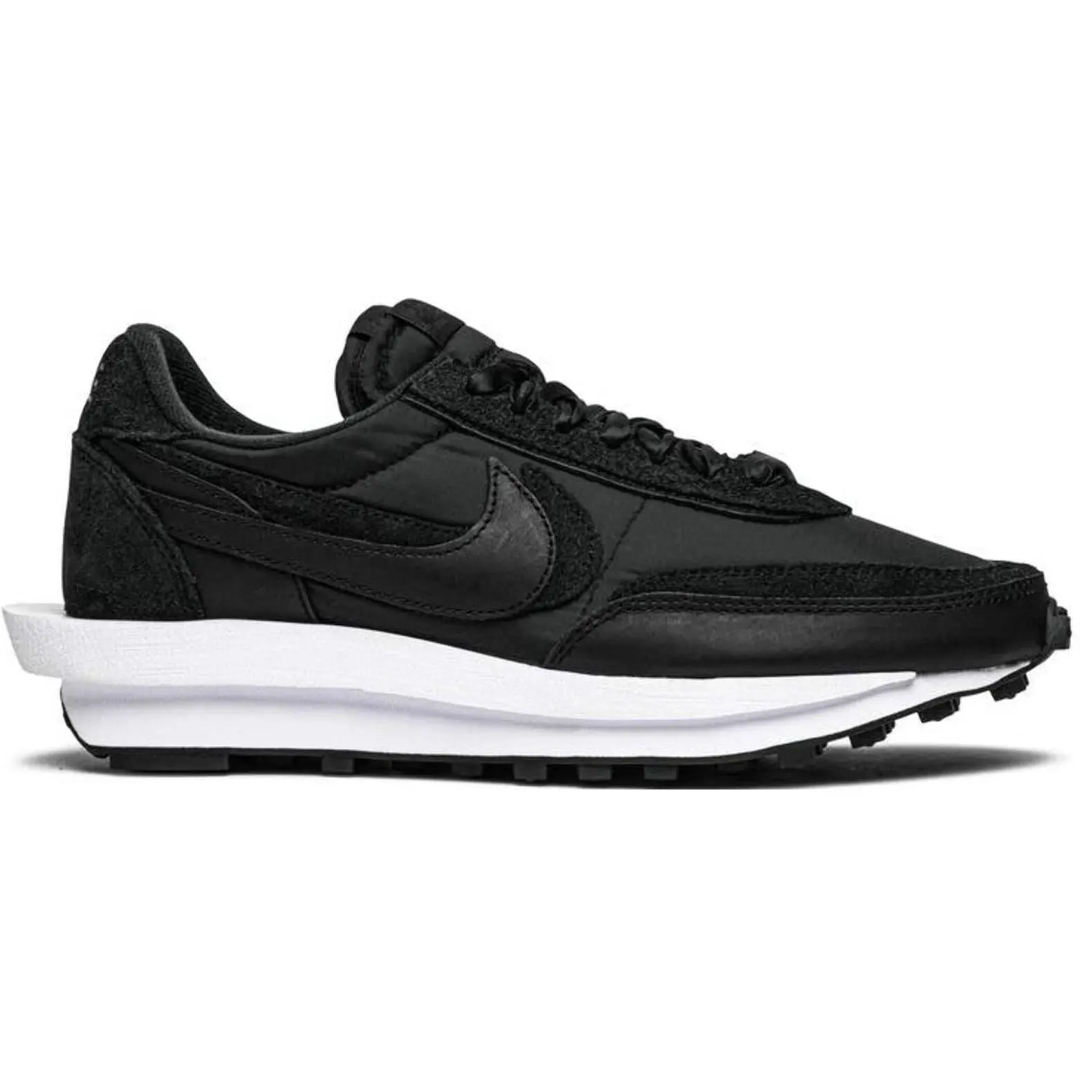 The product is a size 7.5 men's Nike sacai x LDWaffle in black nylon. This athletic sneaker features a unique design combining elements from both the Nike LDWaffle and sacai models, with a sleek black color and nylon upper material. Released in 2020, this shoe is part of the Nike LDWaffle product line and offers a stylish and comfortable option for men looking to make a statement with their footwear.