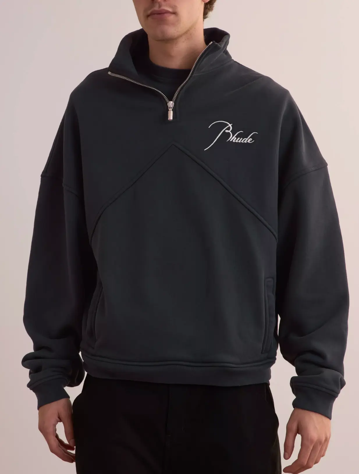 RHUDE Authentic Men's Vintage Black Heavyweight Embroidered Quarter Zip Sweatshirt XS - MSRP: $750