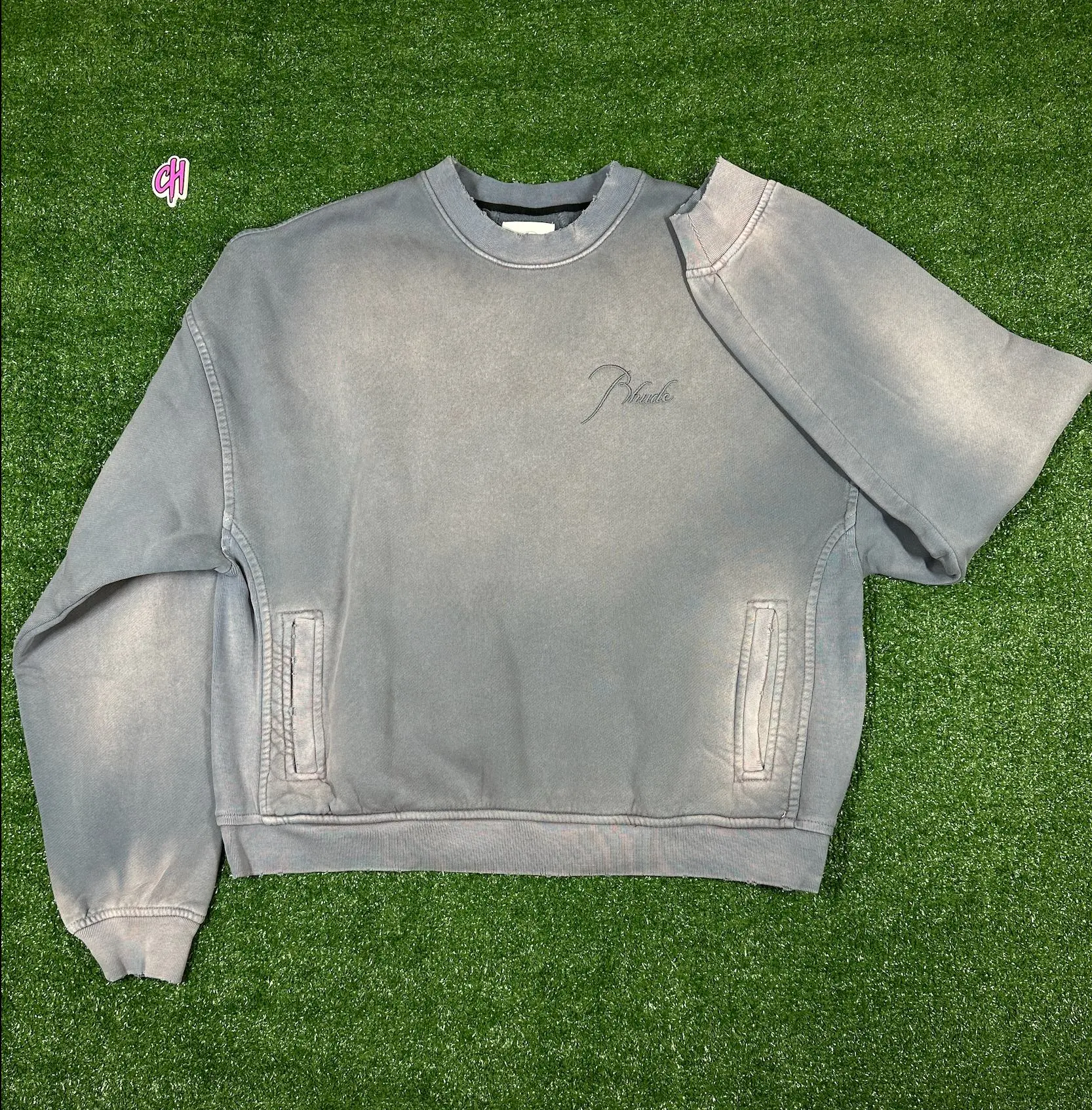 RHUDE Authentic Embroidered Crewneck Sweater-Sundry Elephant-Size Small MSRP:$680.00