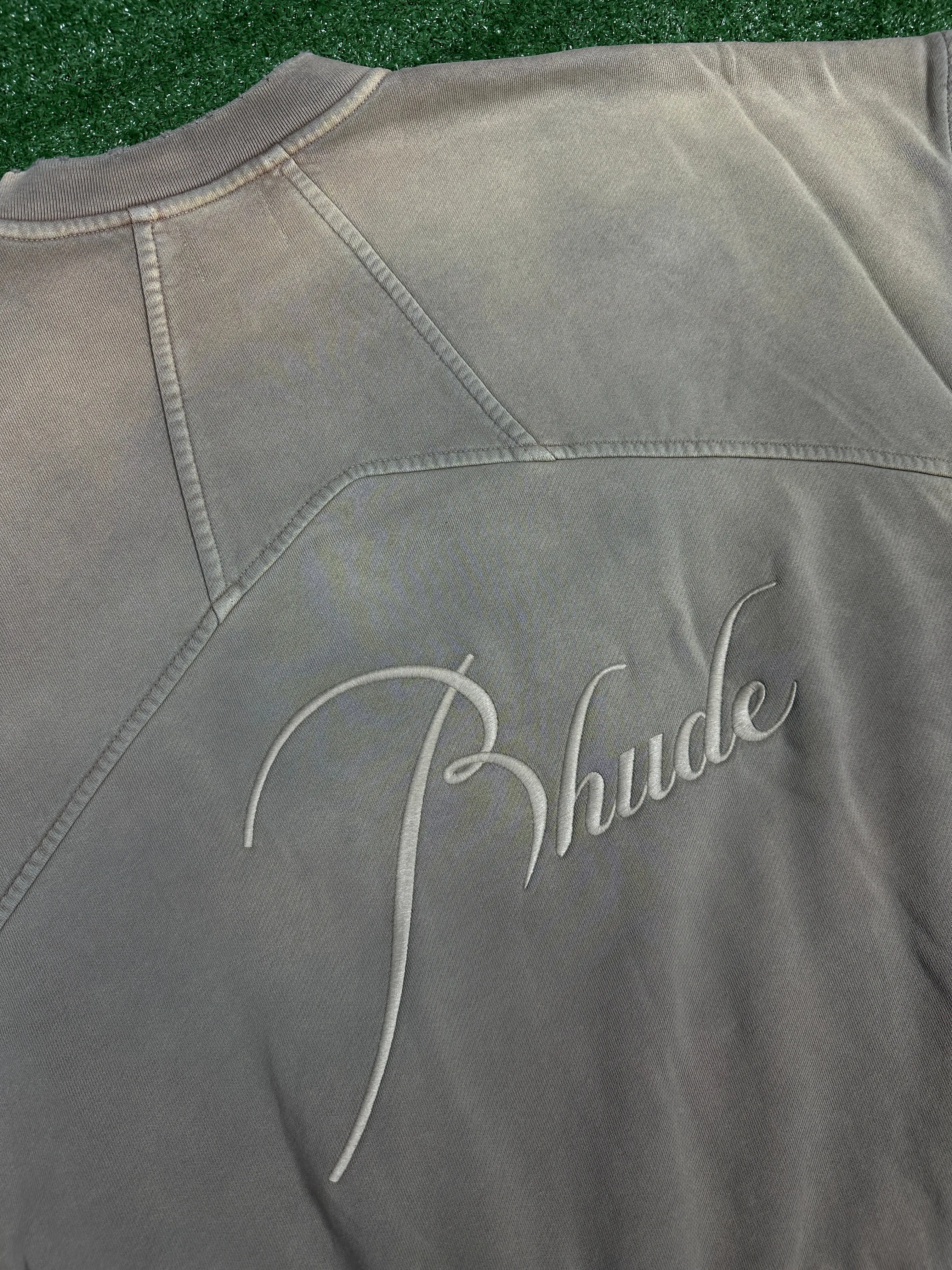 The Rhude Embroidered Crewneck Sweater in Sundry Elephant offers a refined blend of contemporary style and craftsmanship. Featuring intricate embroidery, this sweater elevates casual wear with subtle yet distinctive detailing. Its premium fabric ensures comfort and durability, making it a versatile addition to any wardrobe for those who appreciate expert design and quality.