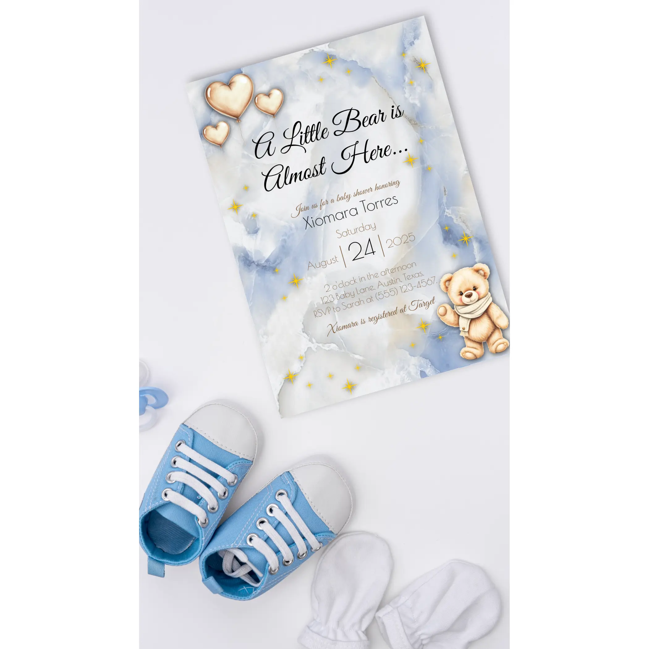 Celebrate the arrival of your little bundle of joy with this sweet and whimsical baby shower invitation featuring our signature teddy bear illustrations. With dreamy stars, soft pastels, and charming personalization, this printed invitation sets the tone for a cozy, love-filled celebration.