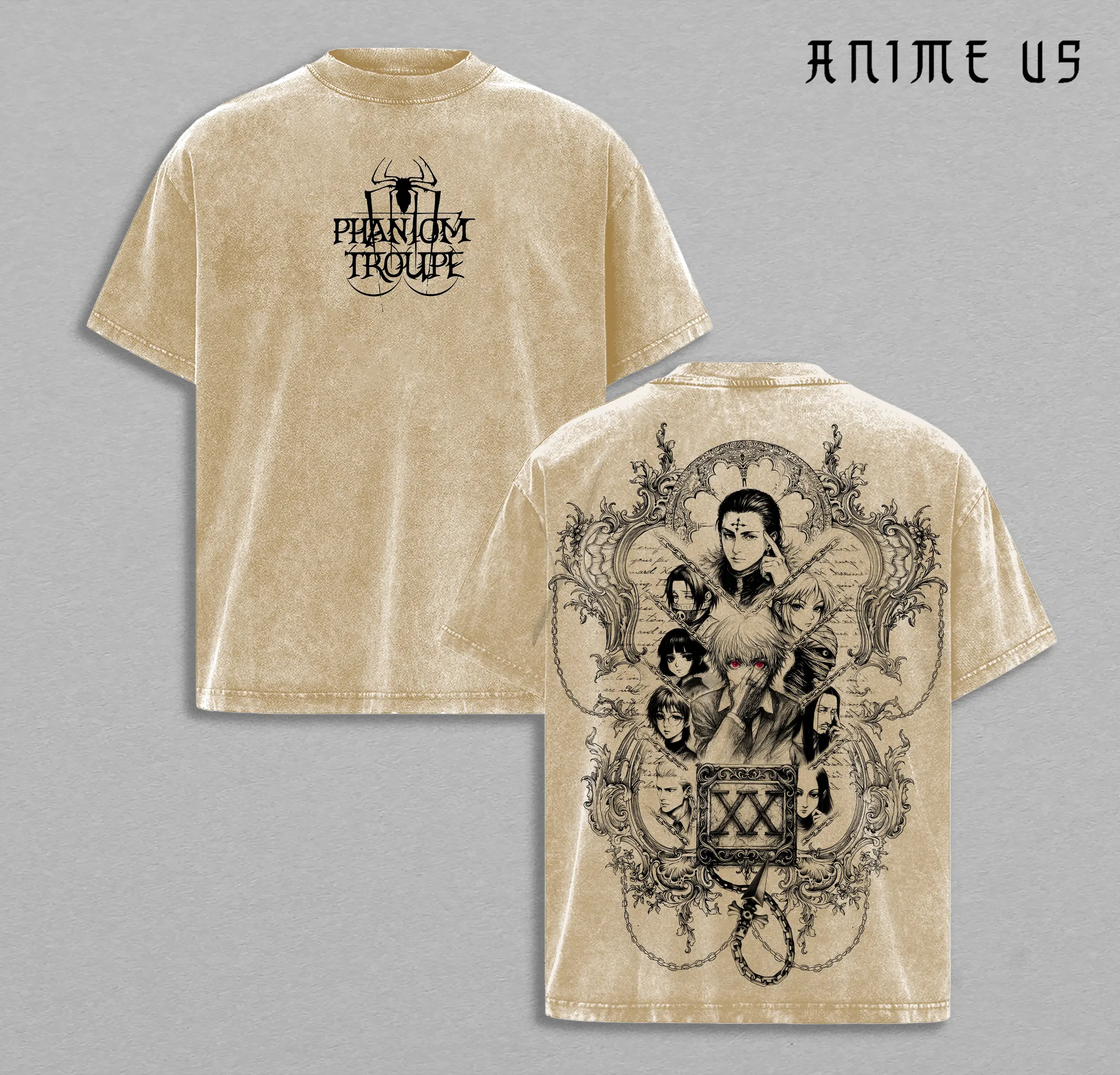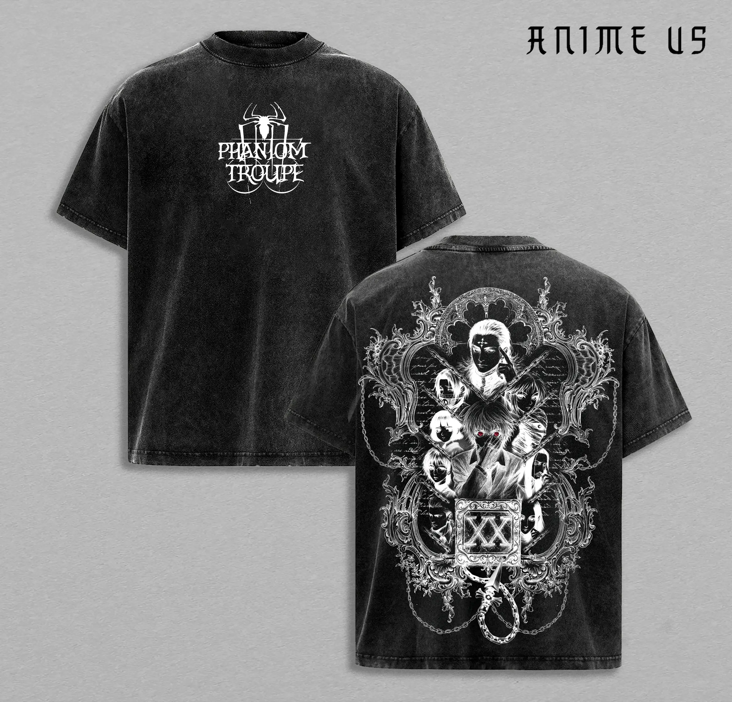 Phantom Troupe - Hisoka - Chrollo - Shizuku - Kurapika Top Hunter x Hunter  Oversized T-Shirt, Genei Ryodan Spider Clan Graphic Tee, Vintage Washed Anime Streetwear Shirt Anime Streetwear
