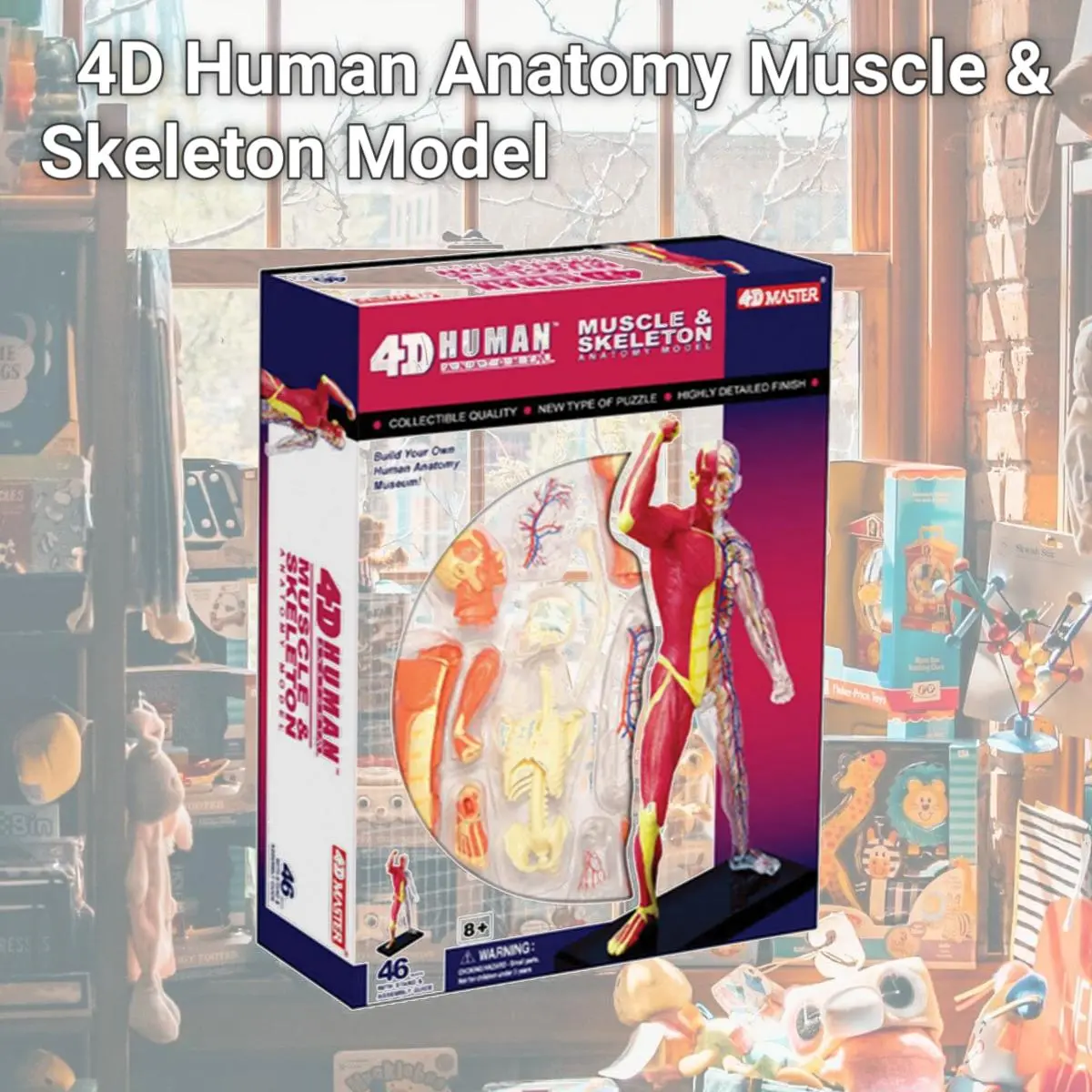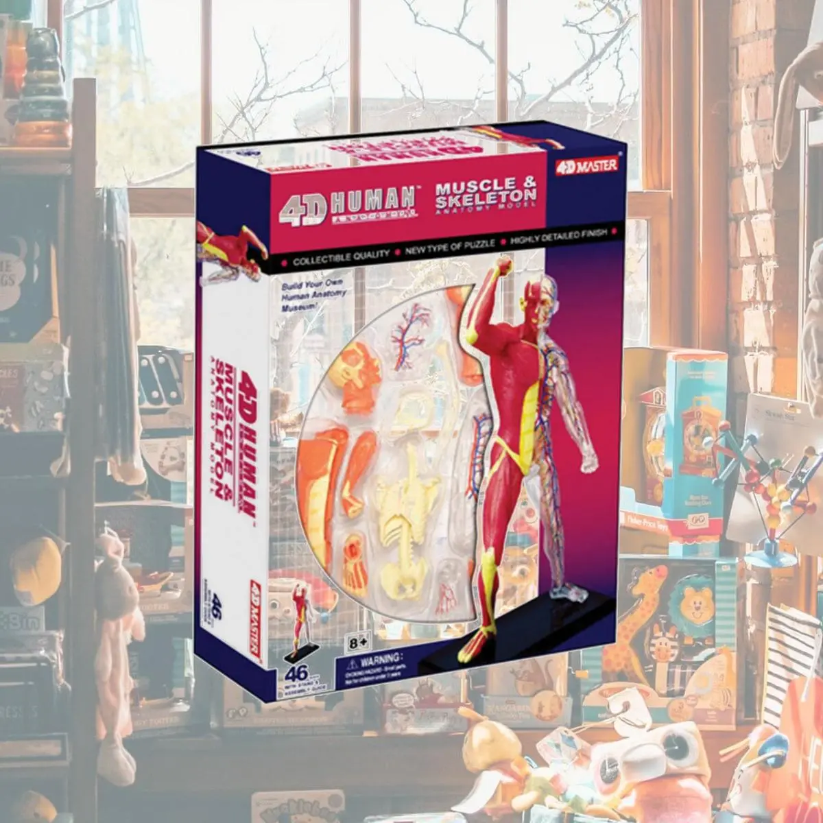 Build your own human anatomy model of the muscular/skeletal system. This exceptionally detailed, 8" model contains 46 detachable, hand-painted medical education-quality organs and parts and a display stand. Also includes illustrated assembly guide and description of the anatomy along with some fun Q&A to test your knowledge. A nice addition to curriculum for teaching human anatomy or any childs science fair project related to human anatomy. Collect the series and have your own human anatomy museum. For ages 8+. Busy hands build strong minds. These accurate 4D human anatomy models offer a unique puzzle challenge that inspires critical thought and mental acuity. Plus, they help build dexterity, fine motor skills and problem solving skills and reinforce learning through hands-on exploration.. Specifications Box Size: 7.25" H x 2.25 " W x 9.5" L.
