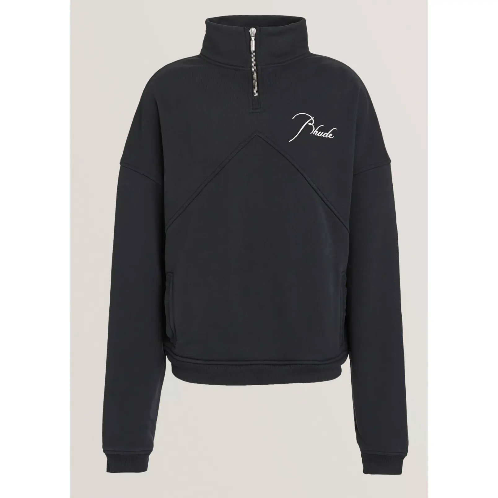 RHUDE Authentic Men's Vintage Black Heavyweight Embroidered Quarter Zip Sweatshirt XL - MSRP: $750