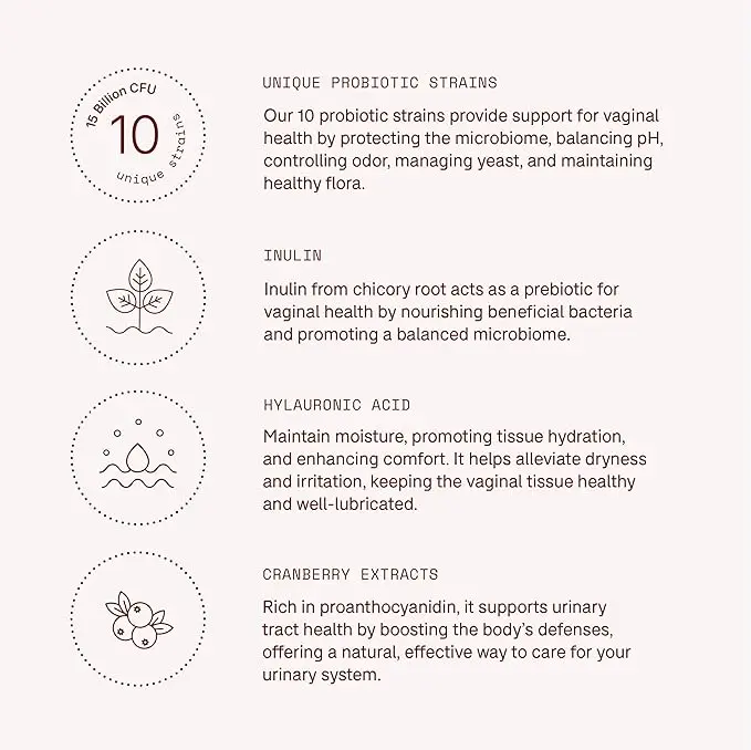 Most Ideal for: Women Concerned About Vaginal Health: Those who want to maintain a balanced vaginal microbiome and prevent imbalances that can lead to discomfort or infections.