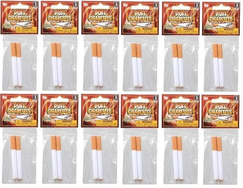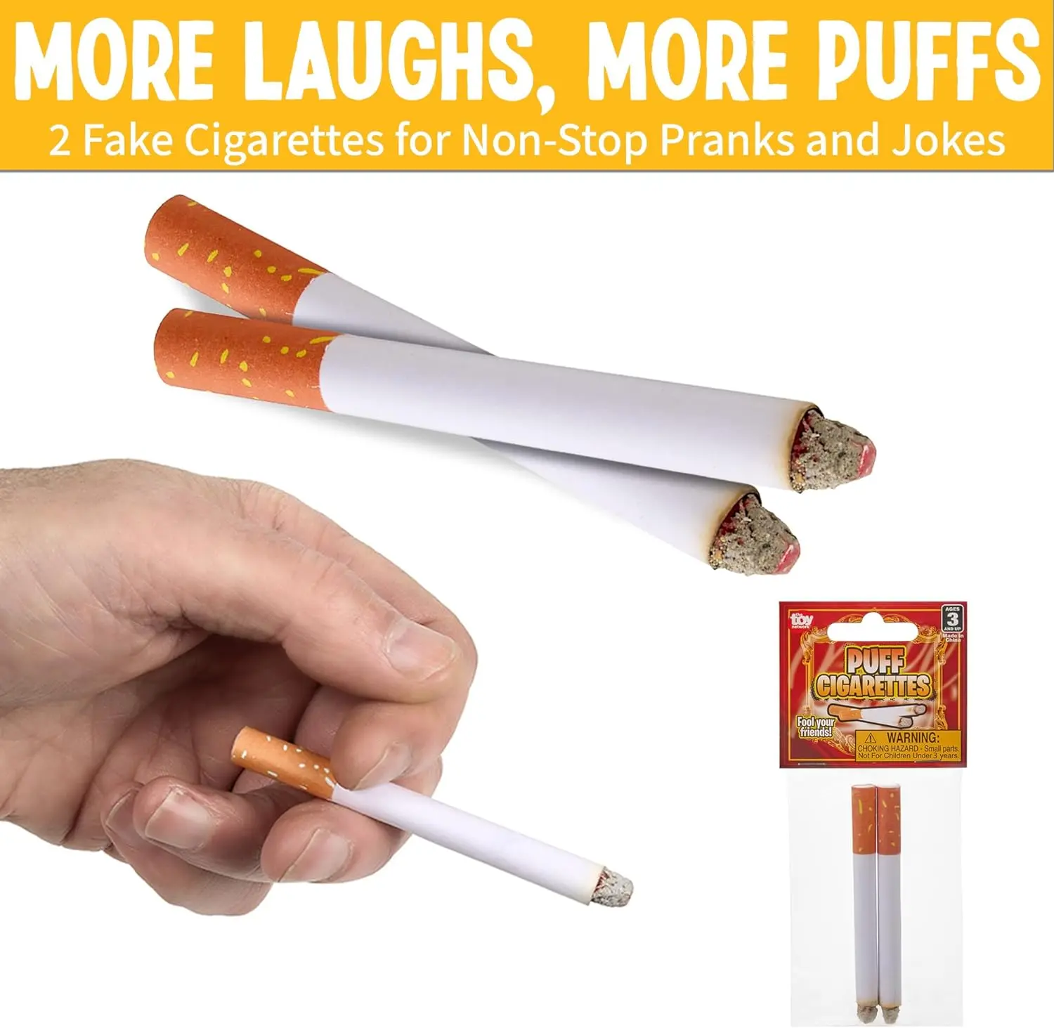 Stock up and get ready to puff away with 72 two-packs β 144 total puff cigarettes! These joke cigarettes are hilariously realistic, featuring a faux glowing ash tip and a puff of fake smoke when exhaled (harmless cornstarch β no inhaling needed). π