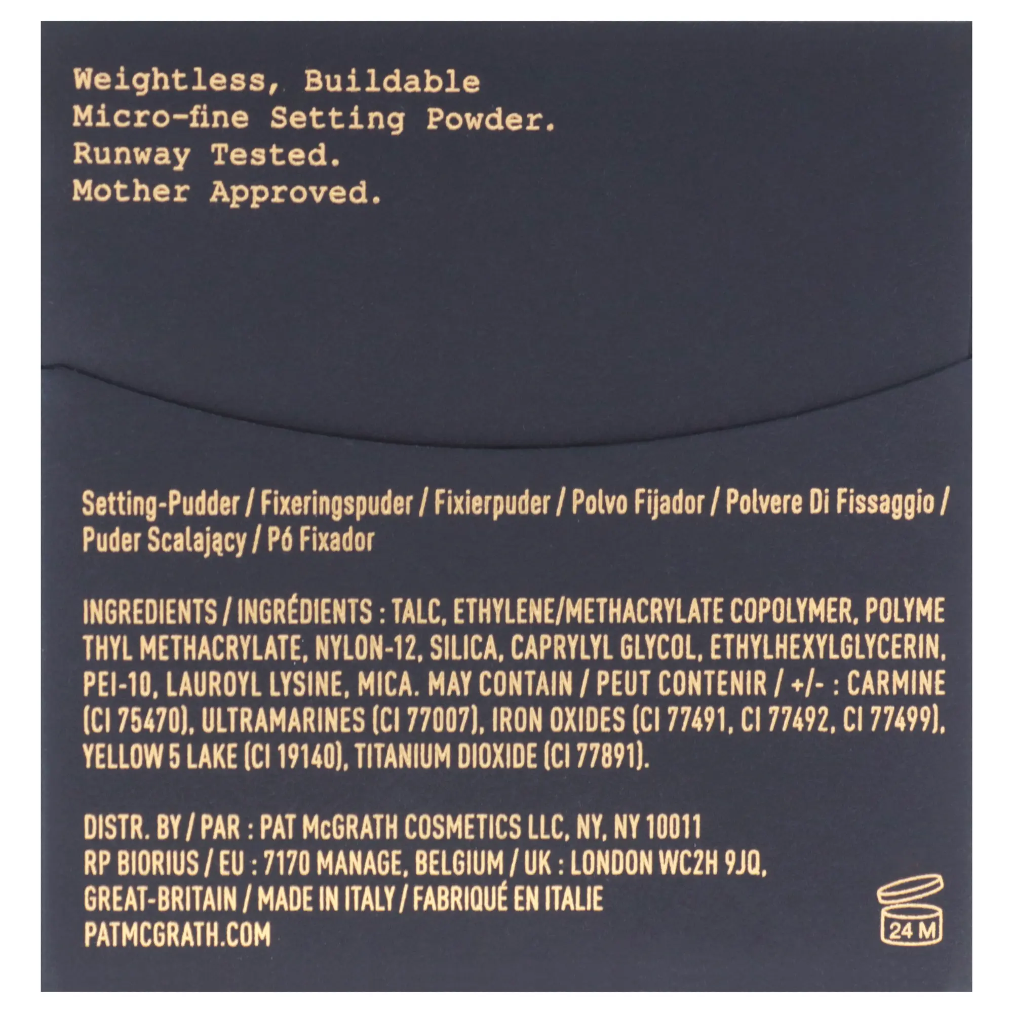 This legendary, light-as-air powder sets your makeup like nobodys business, leaving a velvety canvas that lasts all day. Foundation Locked in for flawless hours. Shine Out the door. Imperfections. Blurred to oblivion.