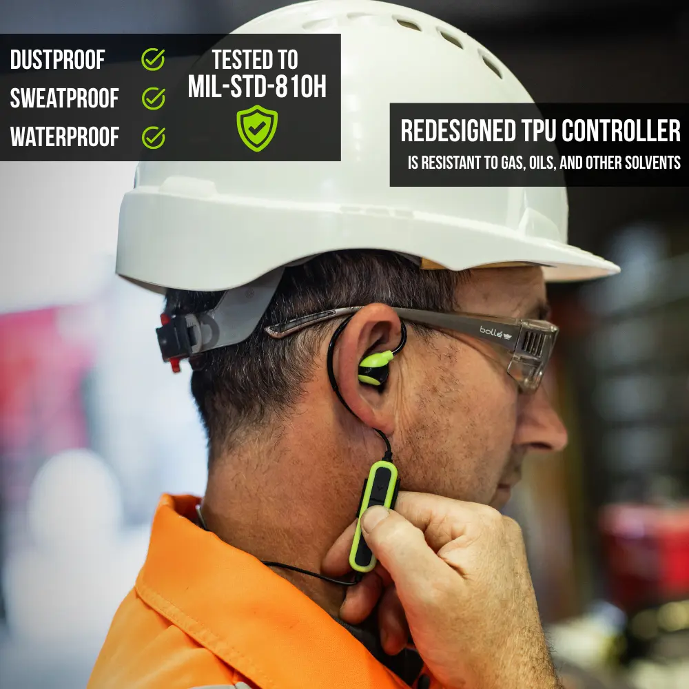 ·Indestructible: IP67 water/dust proof; meets military drop test specifications; earhook designed to withstand high temperatures; TPU controller engineered to withstand exposure to solvents; reinforced wires to withstand physical stress