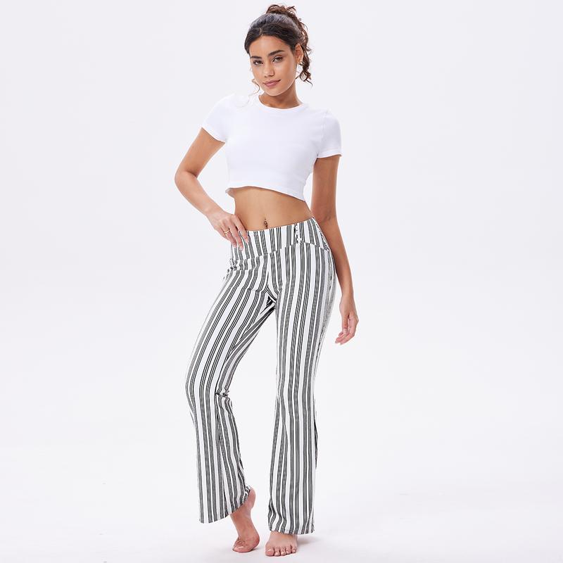 Fabric: These trousers are made of 90% Polyester+10% Spandex, the high-waist design ensures a flattering silhouette, while the striped pattern adds a touch of elegance. Ideal for pairing with various tops, these pants are a wardrobe essential.