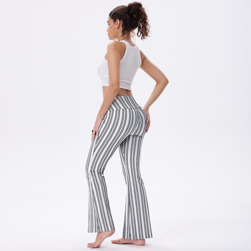 OQQ Women’s Striped Trousers High-Waist Striped Flare Pants – Casual Long Trousers Sport Workout Pants