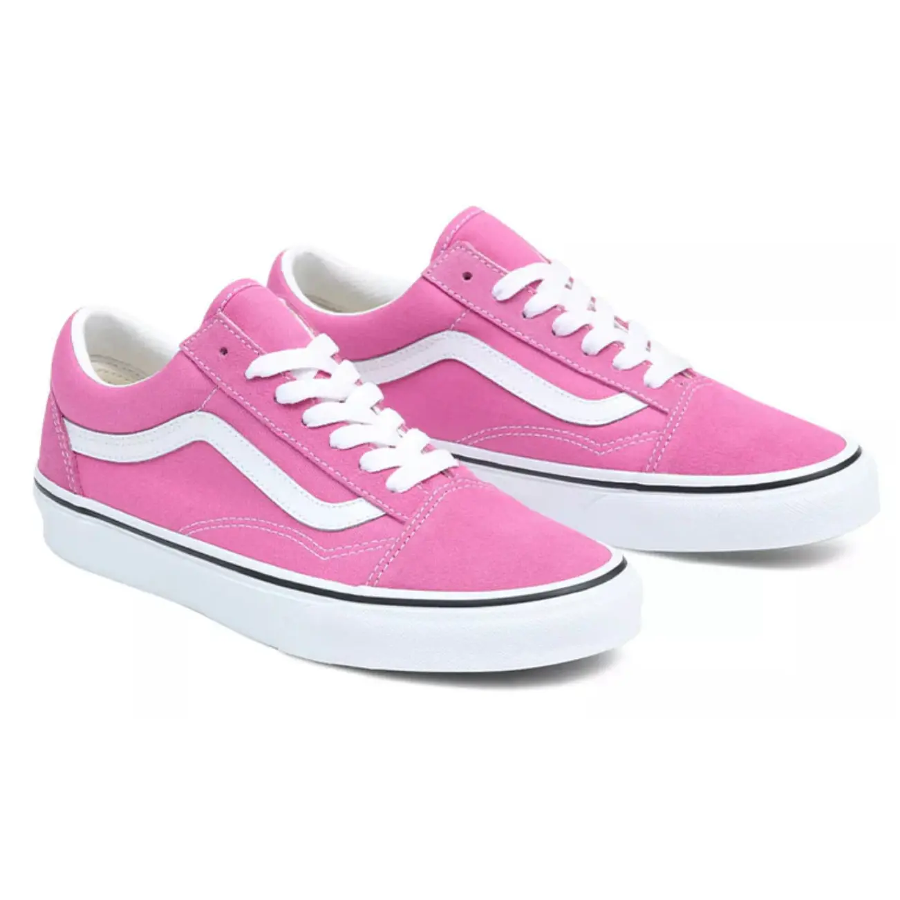 The Vans Old Skool Color Theory 'Fiji Flower' Pink Sneakers combine iconic Vans style with a fresh, floral-inspired color palette. Featuring signature side stripes and durable suede and canvas uppers, these sneakers offer lasting comfort and timeless streetwear appeal. Their color-theory design enhances versatility, making them a standout choice for those seeking both function and fashion in casual footwear.