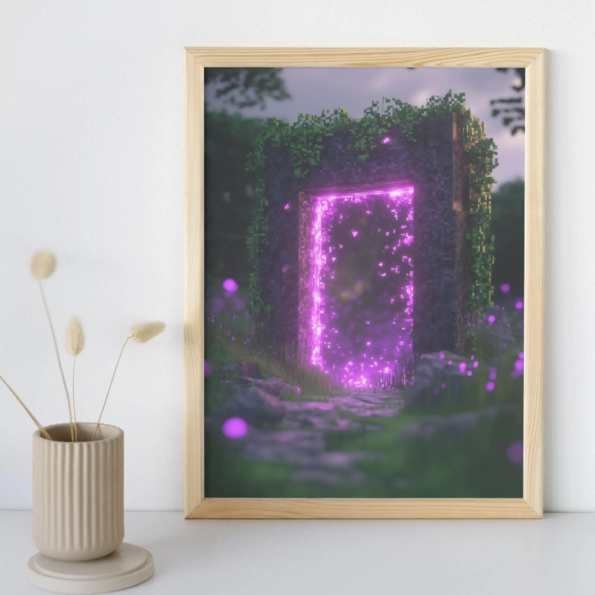 [Sale off up to 65%] [No frame, Free Ship] Pixel Portal Poster | Blocky Digital Wall Art | Gaming Room Decor