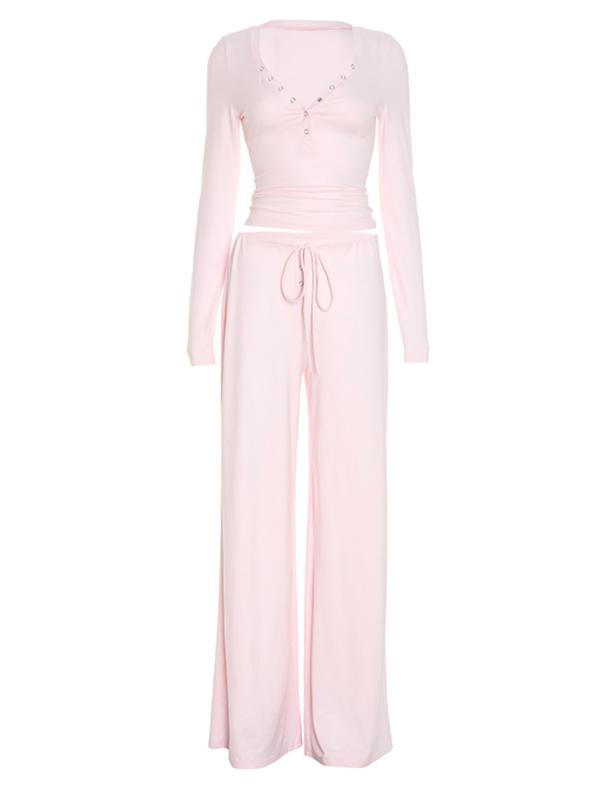 Everyday go-to outfit! V-neck button top + drawstring wide-leg pants set #WomenSet#TikTokShopFallDealsForYou#spotlightfinds#tiktokshopblackfriday #tiktokshopcybermonday