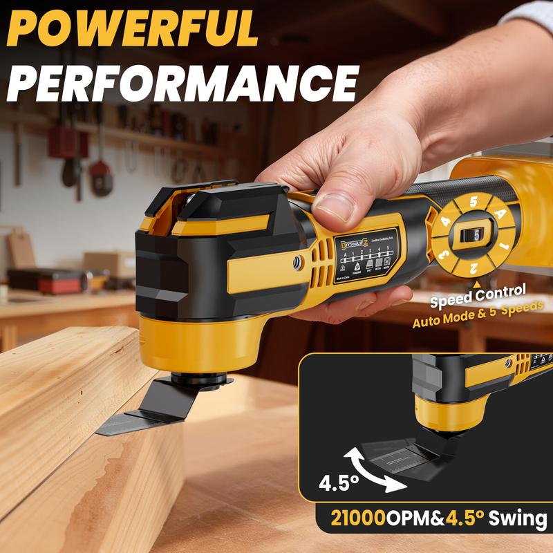 ·(NO BATTERY)【Compatible with DeWalt Batteries】- Our Oscillating Tool Compatible with DeWalt 20V batteries (Battery Not Included). This direct compatibility allows you to maximize your investment, streamline your toolkit, and tackle demanding tasks with proven, cordless power.【Battery not included!】
