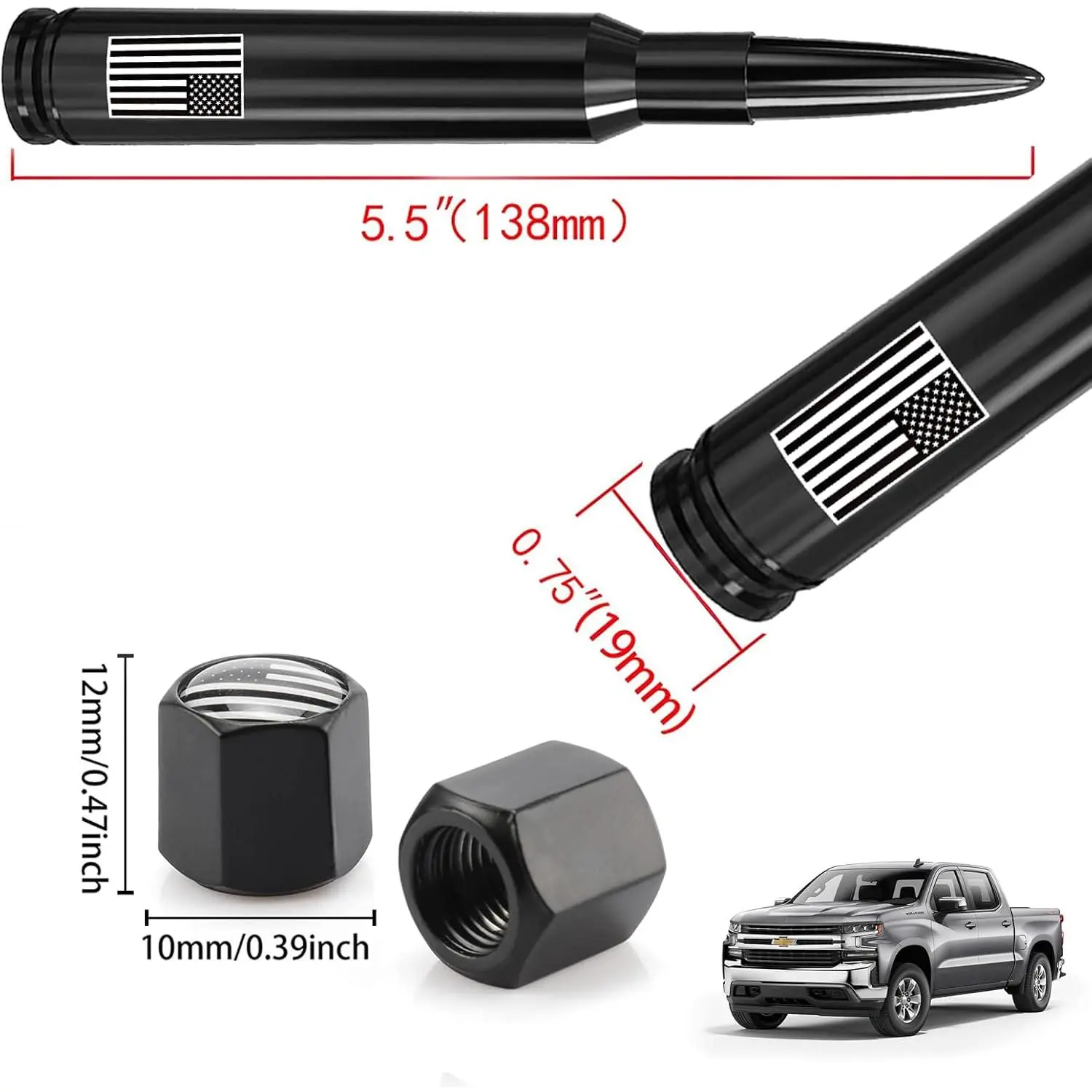 American Flag Design Short Car Truck Bullet Antenna.