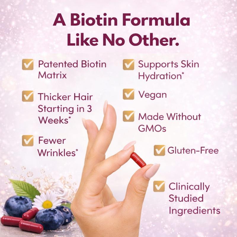 I’ve been taking MyBiotin Pro Clinical for 3 weeks and already see improved hair density and more hydrated skin. It’s also helped smooth the look of fine lines. The vegetarian capsules are easy to swallow, and the results speak for themselves. Very happy with this product!