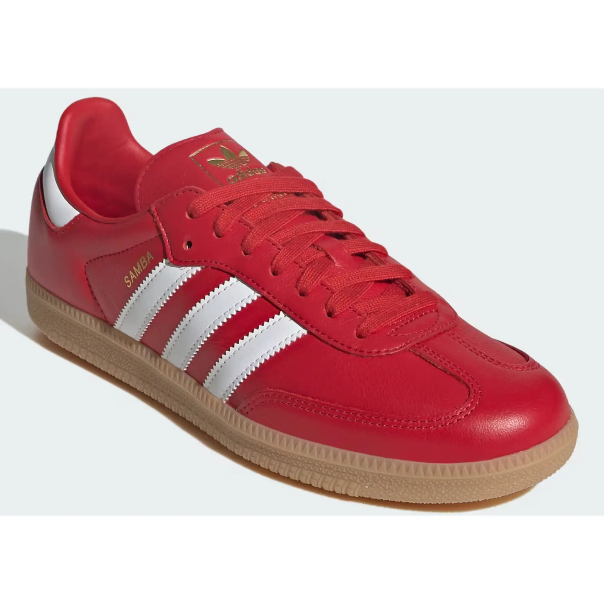 Experience classic style with the Adidas Samba OG 'Red/White Gum Bottom' sneakers. These heritage-inspired shoes feature a vibrant red upper paired with white detailing and a durable gum outsole, delivering both iconic looks and reliable traction. Crafted for comfort and versatility, they seamlessly blend vintage design with everyday wearability, making them a standout choice for those who appreciate authentic sneaker culture.