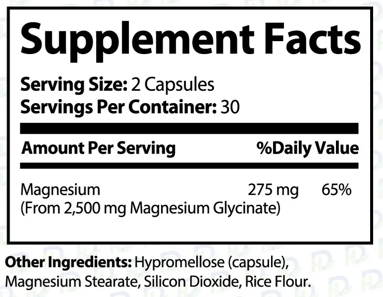 Our high-absorption Magnesium Glycinate is designed to support your body holistically, relaxing muscles, improving sleep quality, helping manage stress, and maintaining healthy muscle and nerve function.