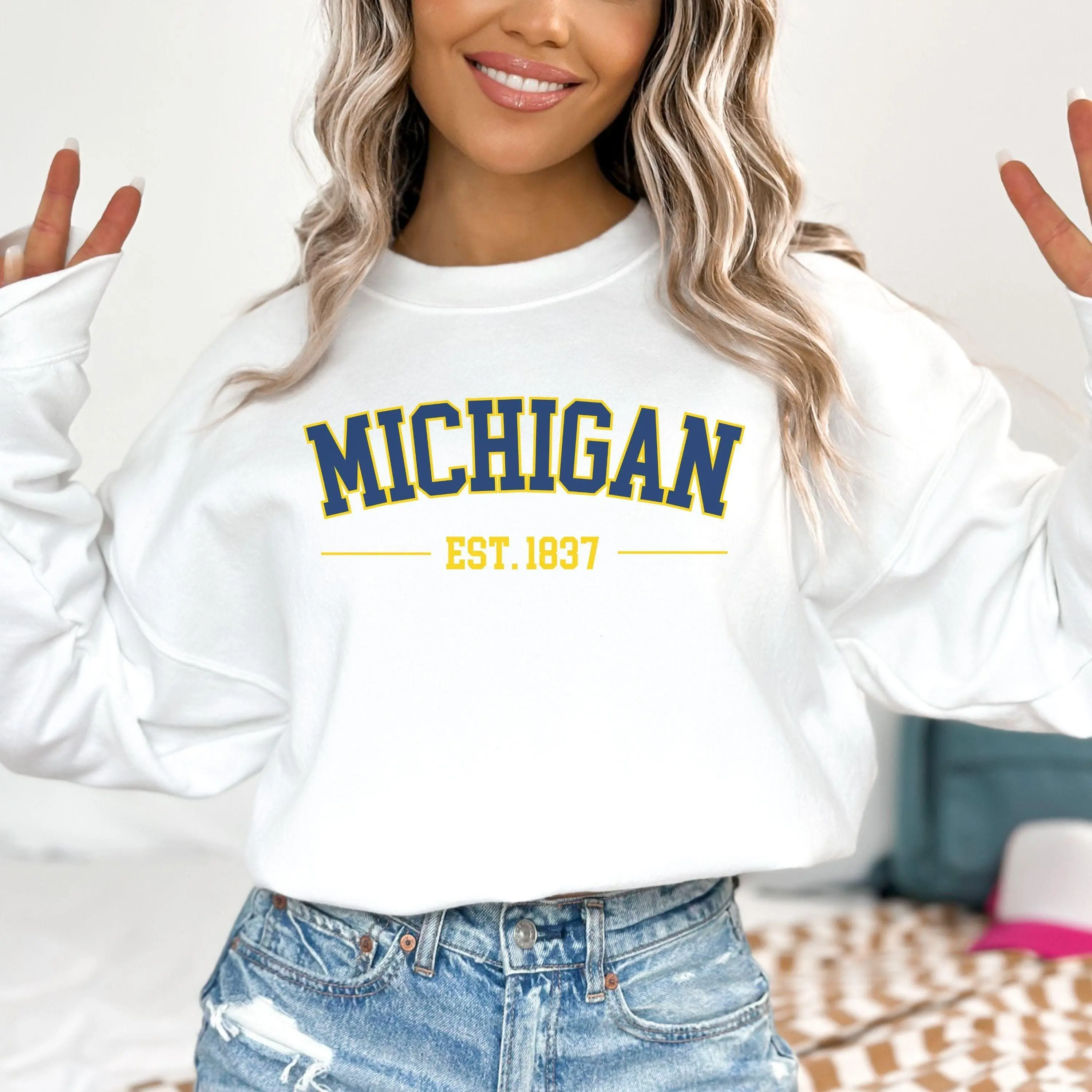 [SALE 50% FOR A LIMITED TIME + FREE SHIP ] Michigan Sweatshirt, Vintage Michigan Crewneck, Michigan Football Sweatshirt, Retro College Game Day Apparel, University Game Day Apparel