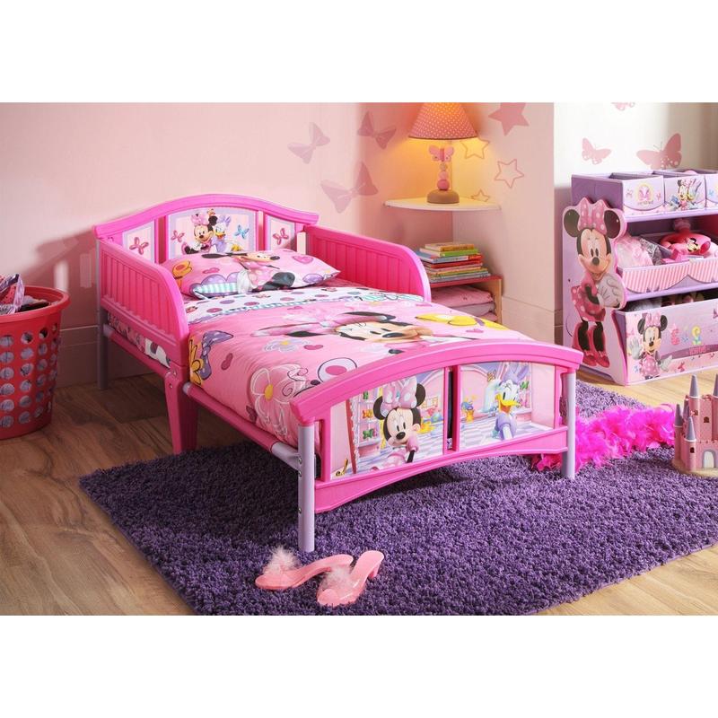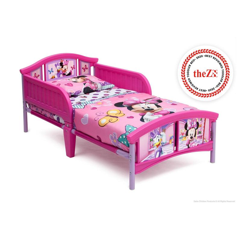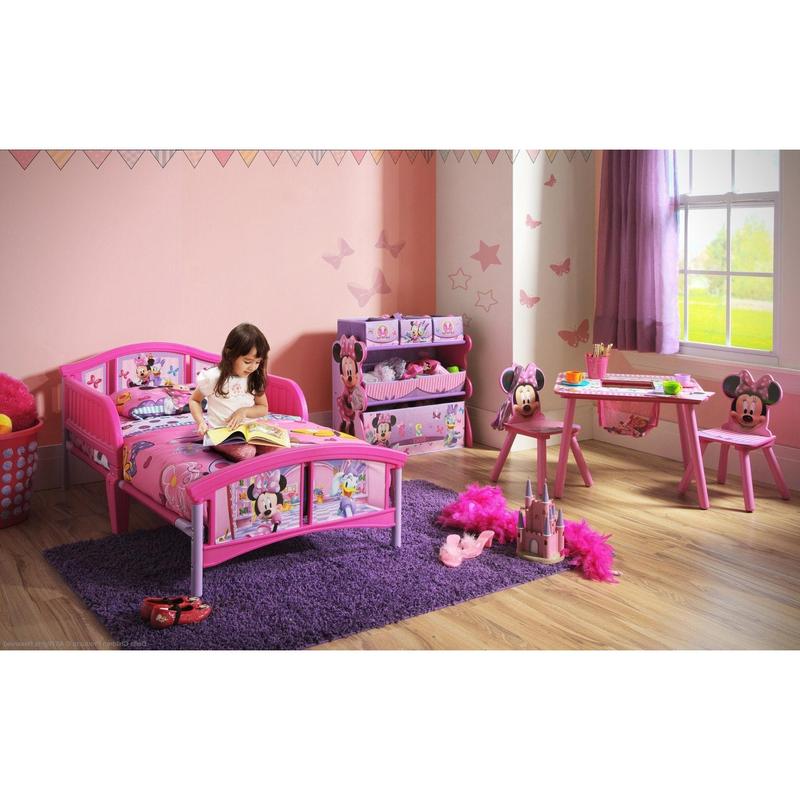 Make her space extra-special with a little help from Minnie Mouse! Boasting colorful graphics of Minnie and her BFF Daisy Duck at the headboard and footboard, this Minnie Mouse Plastic Toddler Bed from Delta Children helps your girl make the transition from crib to big kid bed thanks to the two attached guardrails and low to the ground design.