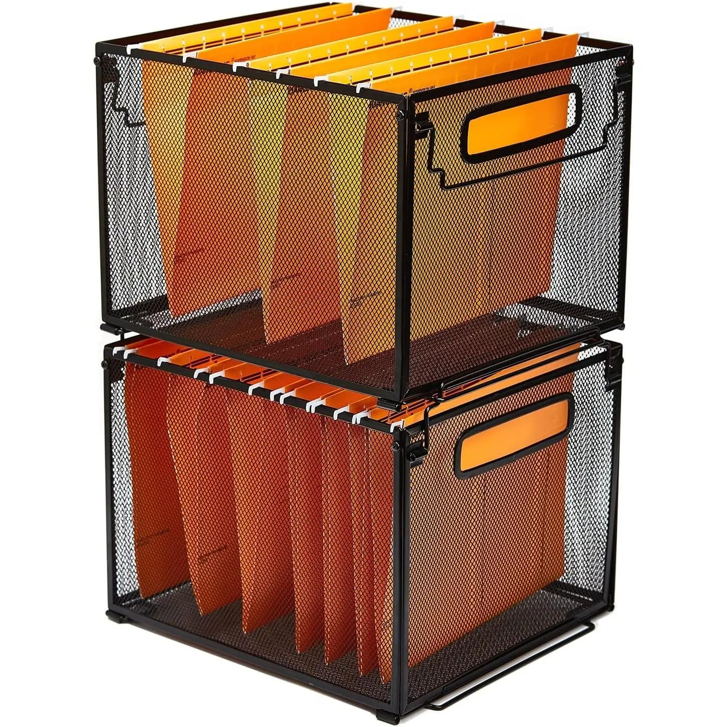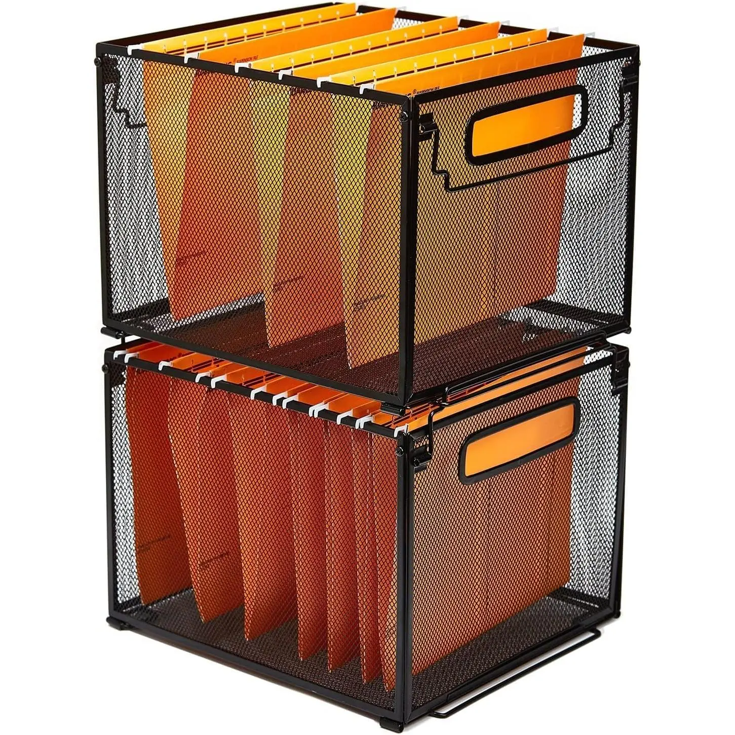 【2-Pack File Baskets】: The two file baskets can be separately or stacked on top of each other.