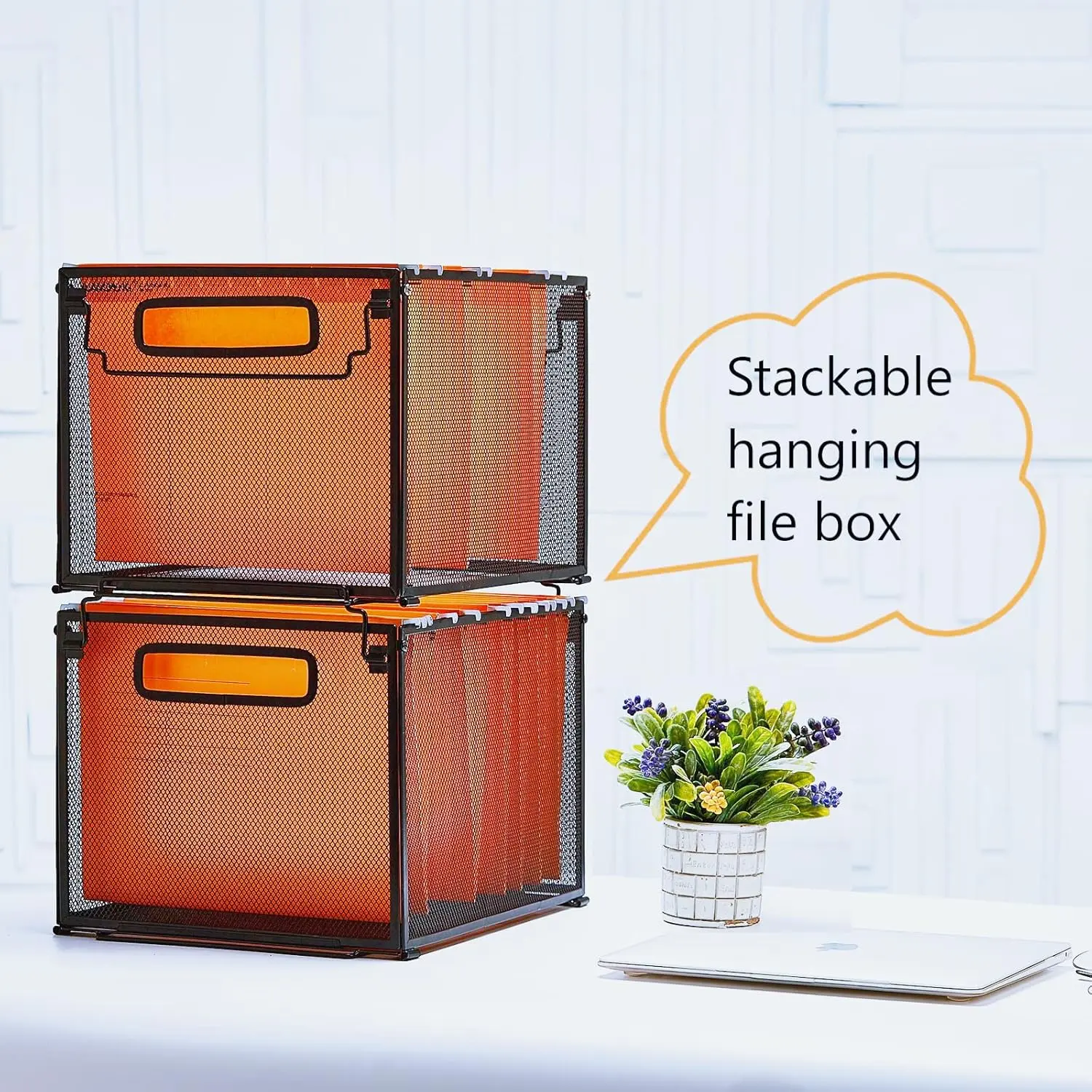 【Additional Features】:This file box adds an handle and bottom bracket to allow multiple products to be stacked on top of each other to save space.