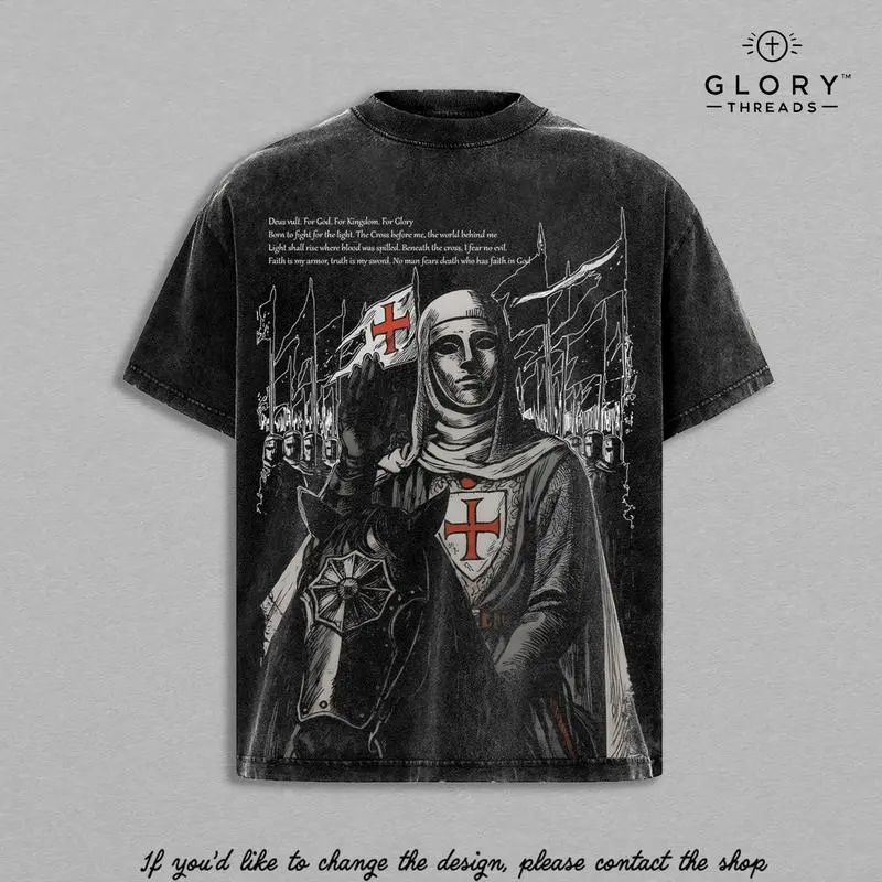 Crusader energy 🔥 Walk with faith, fight with honor ⚔️ #baldwiniv #crusaderking #jerusalemcross #medievalstreetwear #vintagewashedtee